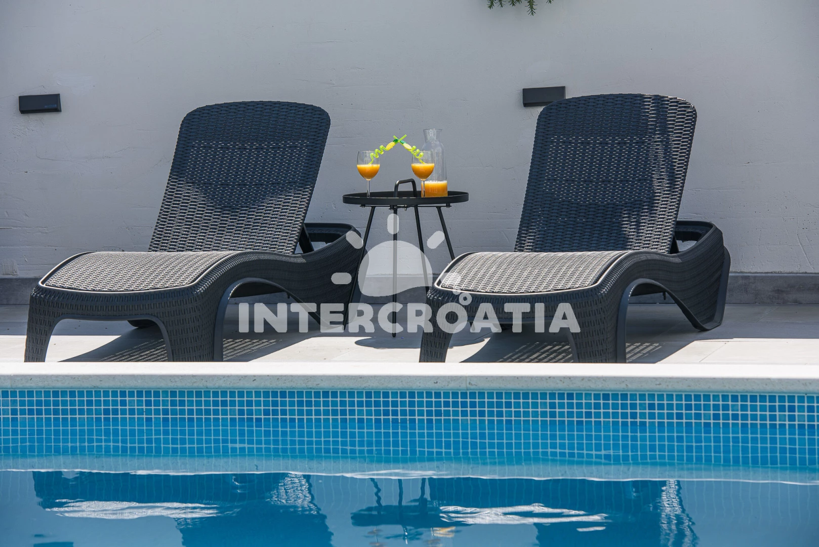 Vzdálenosti: Moře a oblázková pláž 450 m, obchod s potravinami, restaurace a bar 500 m, centrum 1 km, letiště (Split) 7 km.