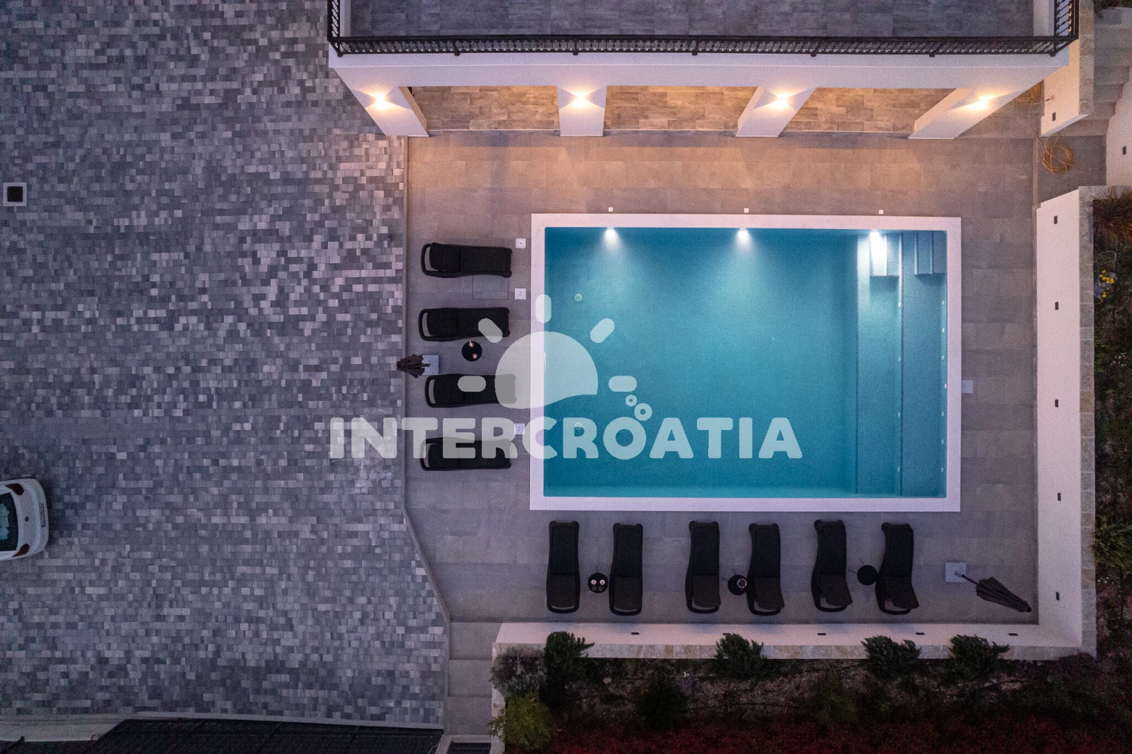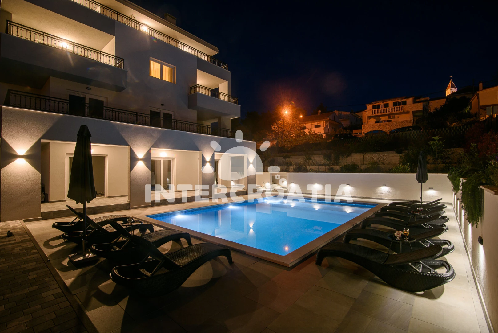 Luxusně zařízená a samostatně stojící apartmánová vila se nachází 6 minut pěší chůzí od moře a oblázkové pláže. Vila nabízí ubytování v klimatizovaných apartmánech s lodžiemi a venkovním posezením. K dispozici je bazén s ohřevem, lehátky a vlastní parkoviště pro automobily.
