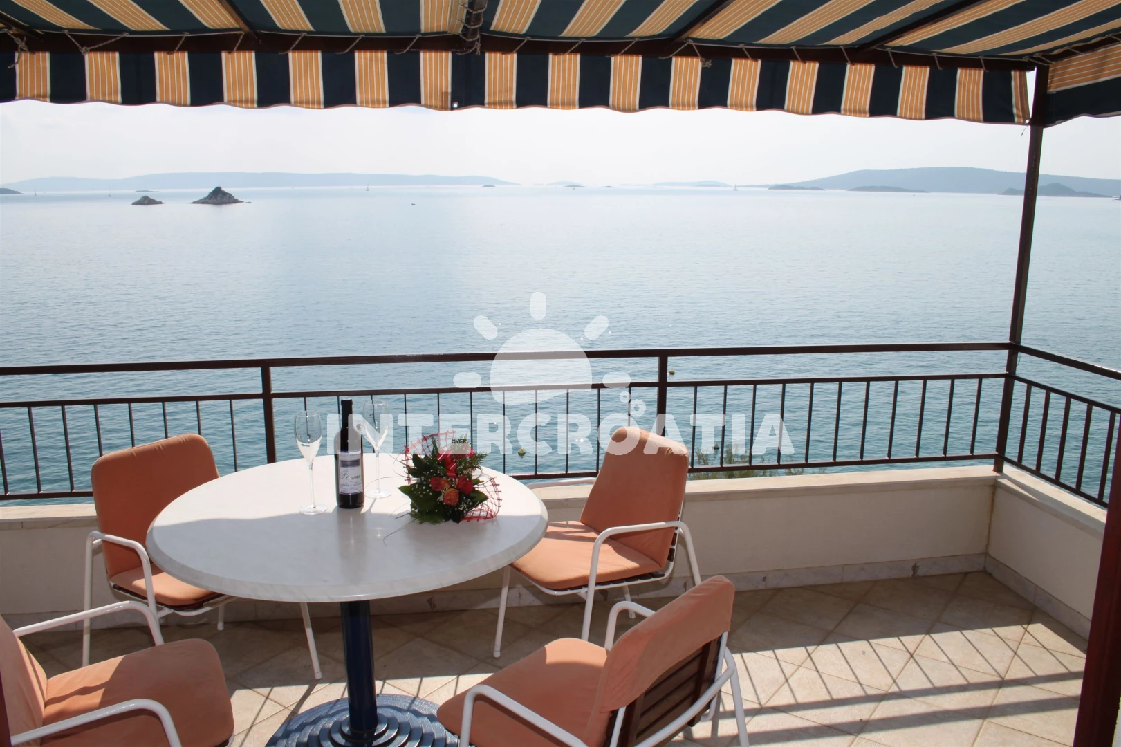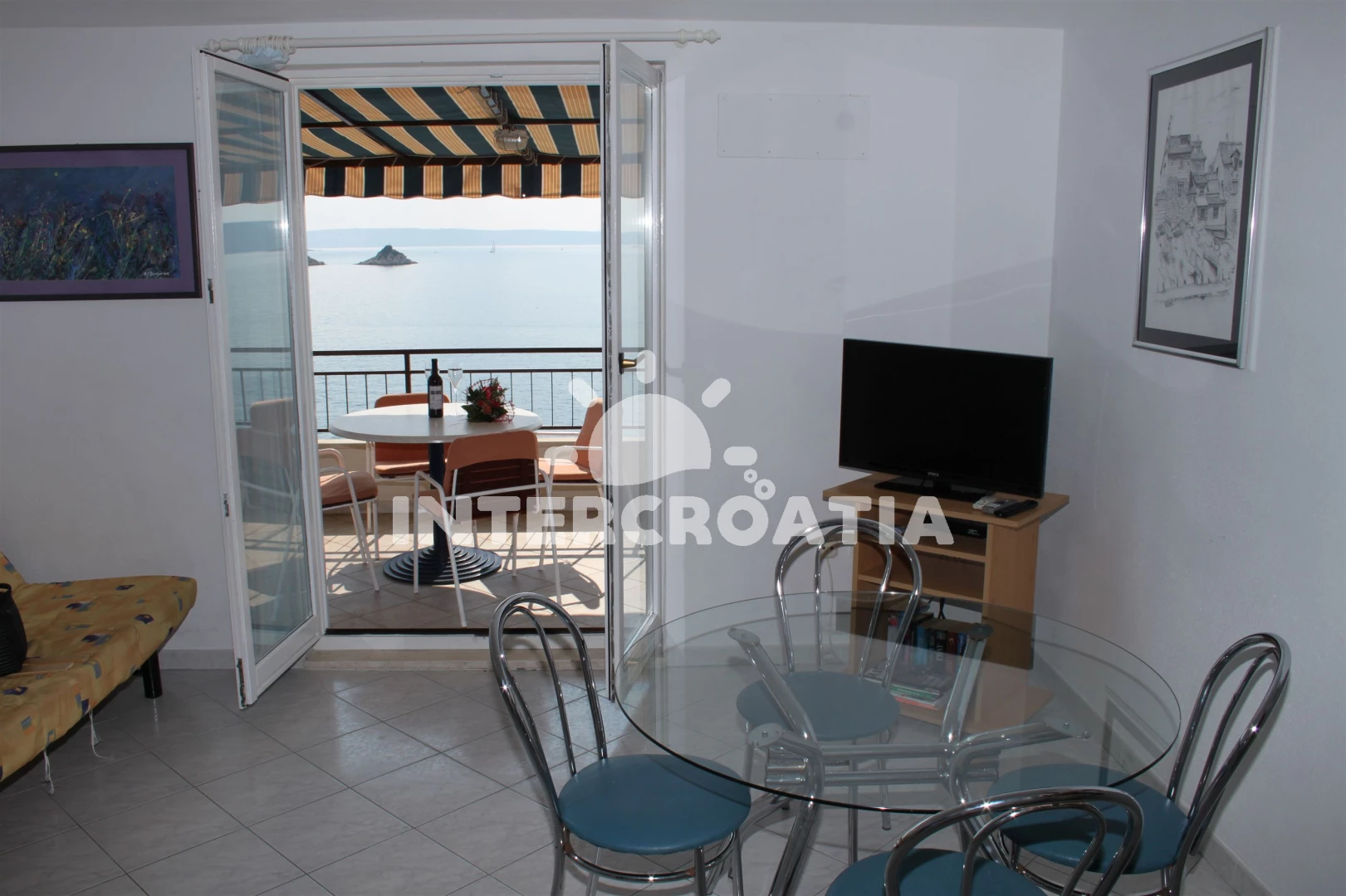Vzdálenosti: Moře 5 m, pláž 10 m (betonové desky), půjčovna motorových člunů 50 m, půjčovna kol 100 m, restaurace 150 m, bar 150 m, mini golf 150 m, supermarket 150 m, tenisové kurty 200 m, směnárna 300 m, centrum 300 m, veřejná doprava 600 m, potápění 1 km, banka 1,5 km, pošta 1,5 km, ambulance 2 km, čerpací stanice 2 km, lékárna 2 km, diskotéka 2 km, muzeum 3 km, letiště (Split) 9 km, trajekt (Split) 33 km,