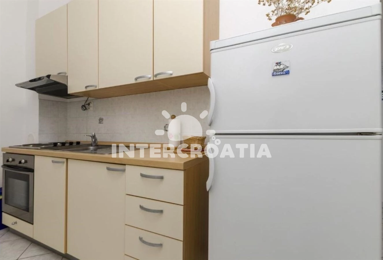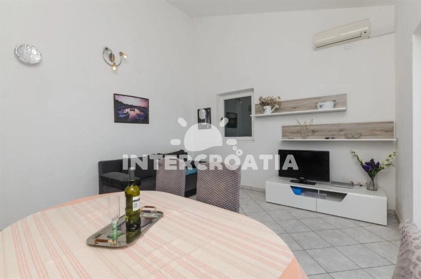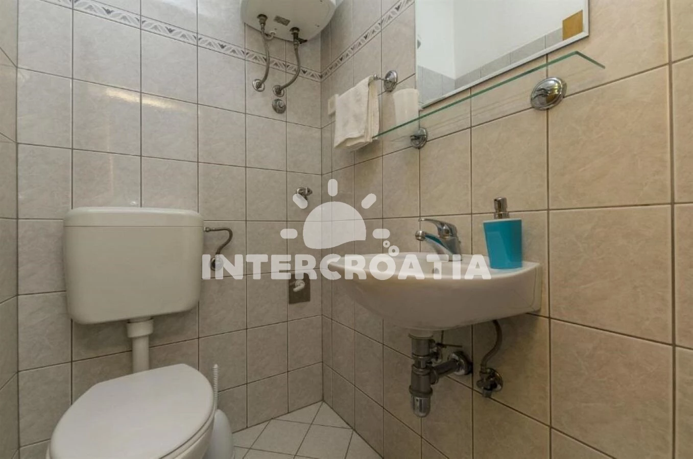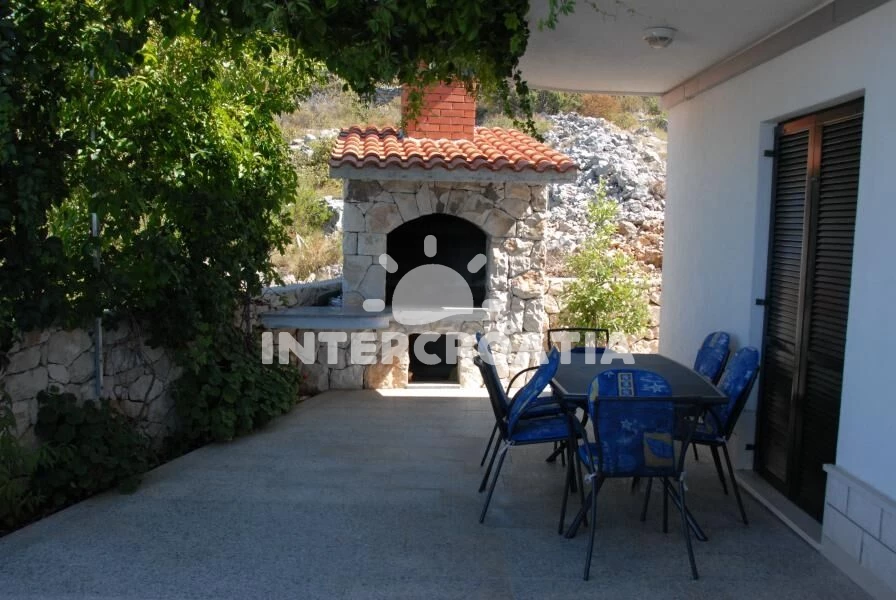 Apartmán se nachází 80 m od moře a pláže. Pláž je skalnatá, oblázková a betonové desky. U objektu je k dispozici společná zahrada s posezením a grilem. Parkování je před domem.