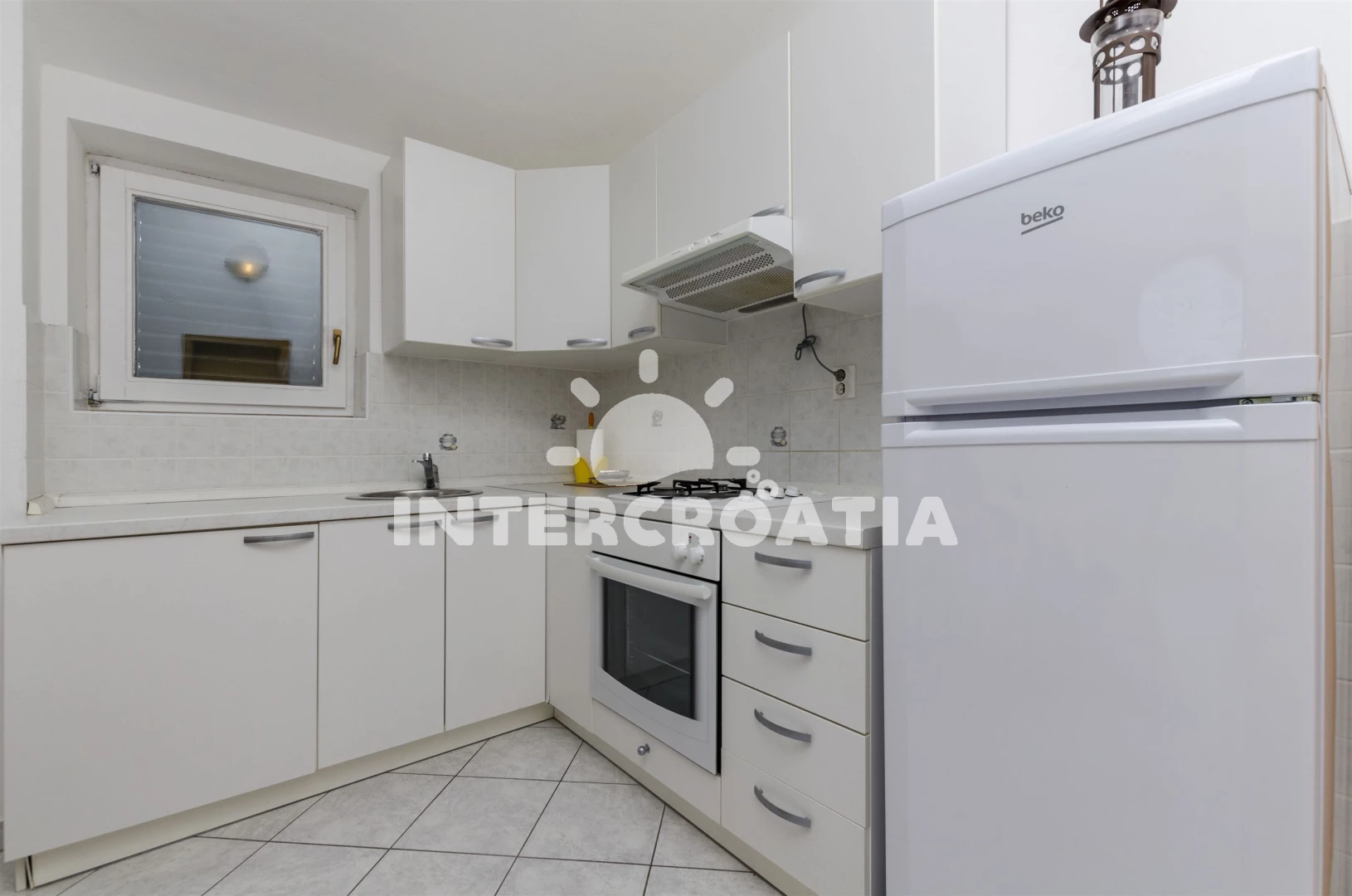 Apartmán se nachází 100 m od moře a pláže. Pláž je oblázková a betonové desky. U objektu je k dispozici společná zahrada s posezením a grilem.