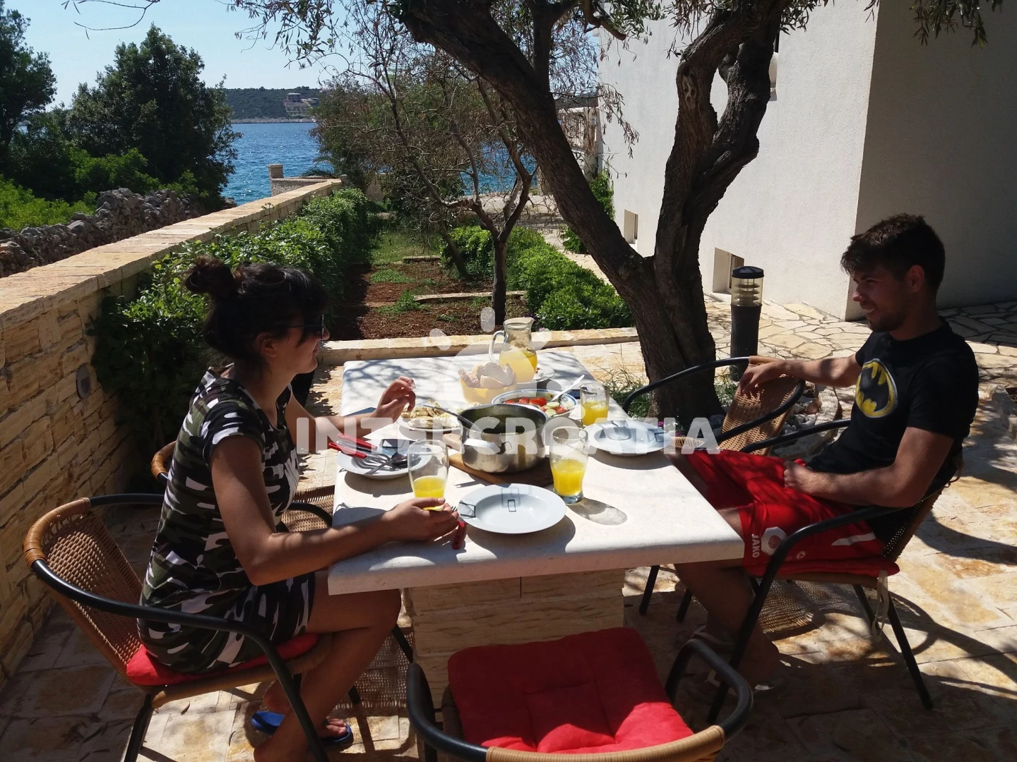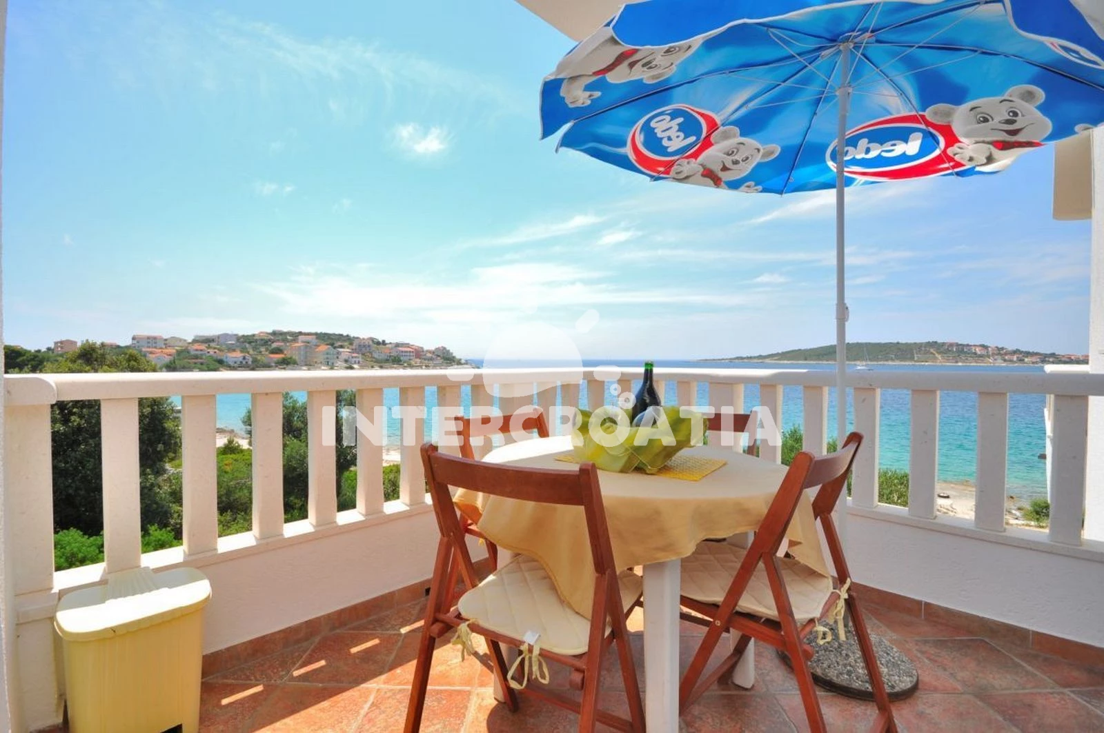 Apartmán se nachází 30 m od moře a pláže. Pláž je oblázková a betonové desky. U objektu je k dispozici společná zahrada s posezením a grilem. Parkování je před domem.