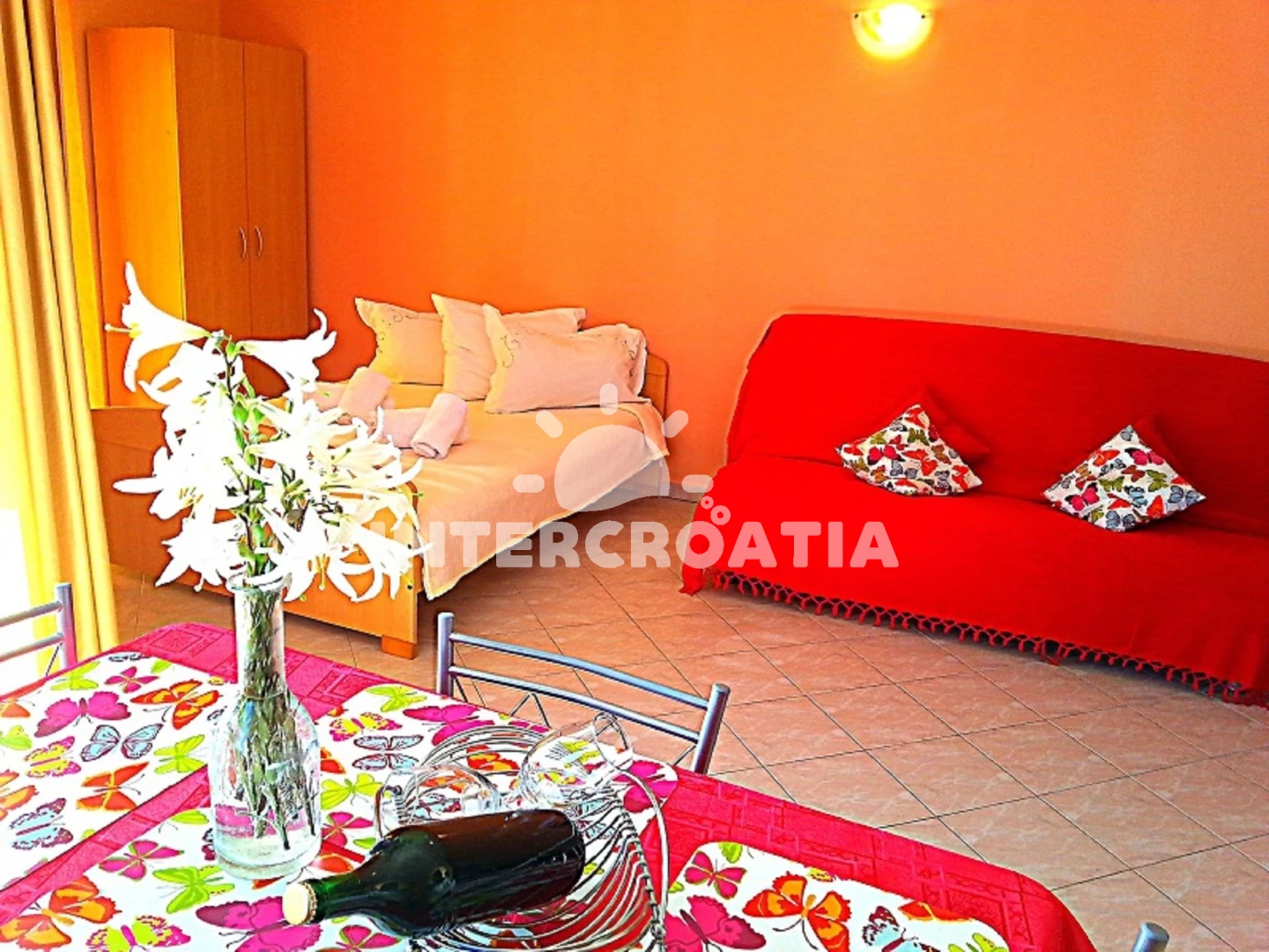 Apartmán se nachází 30 m od moře a pláže. Pláž je oblázková a betonové desky. U objektu je k dispozici společná zahrada s posezením a grilem. Parkování je před domem.
