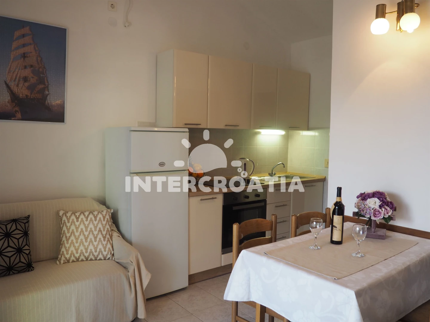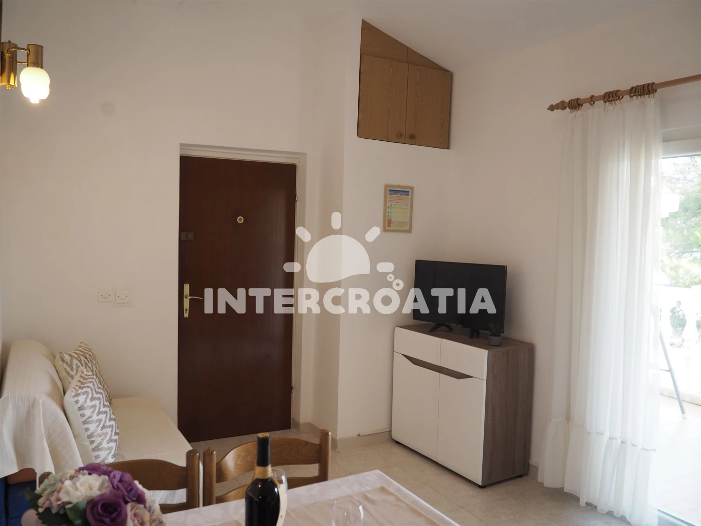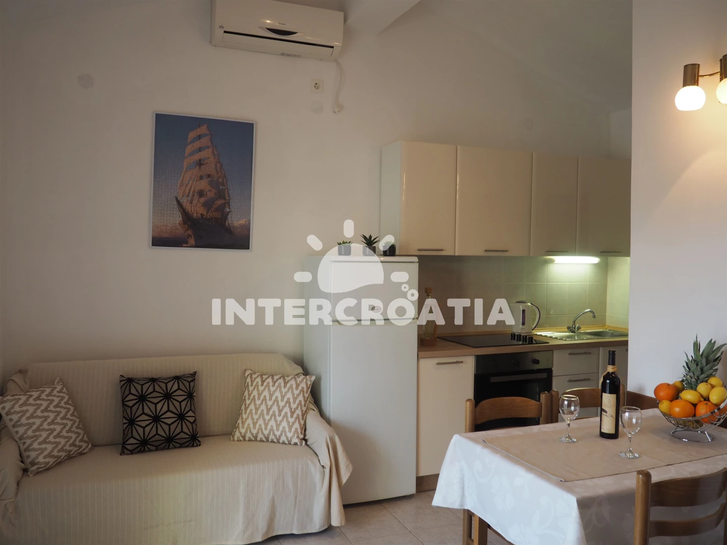 Apartmán se nachází 70 m od moře a pláže. Pláž je skalnatá, oblázková a betonové desky. U objektu je k dispozici společná zahrada s posezením a grilem. Parkování je před domem.