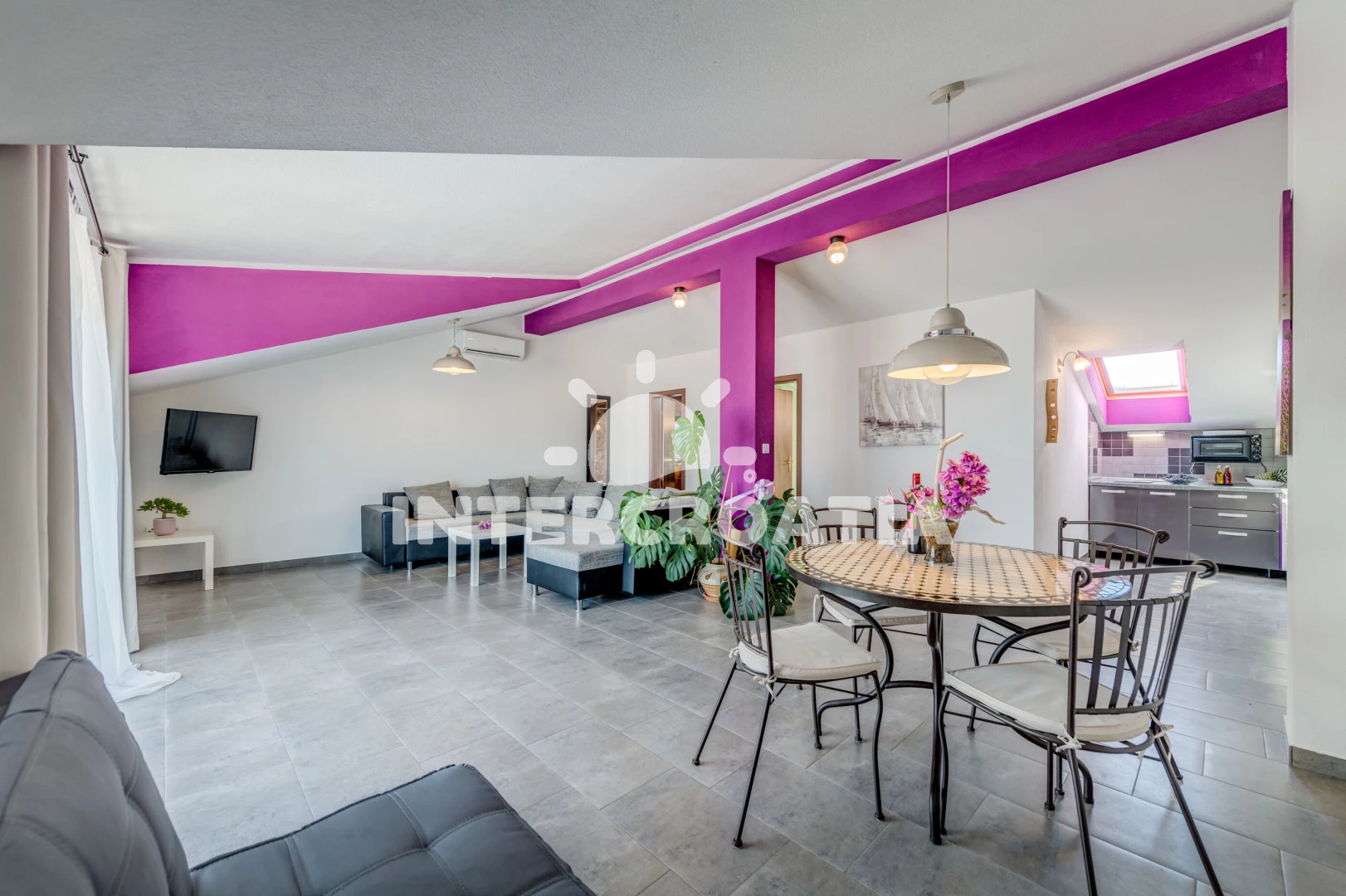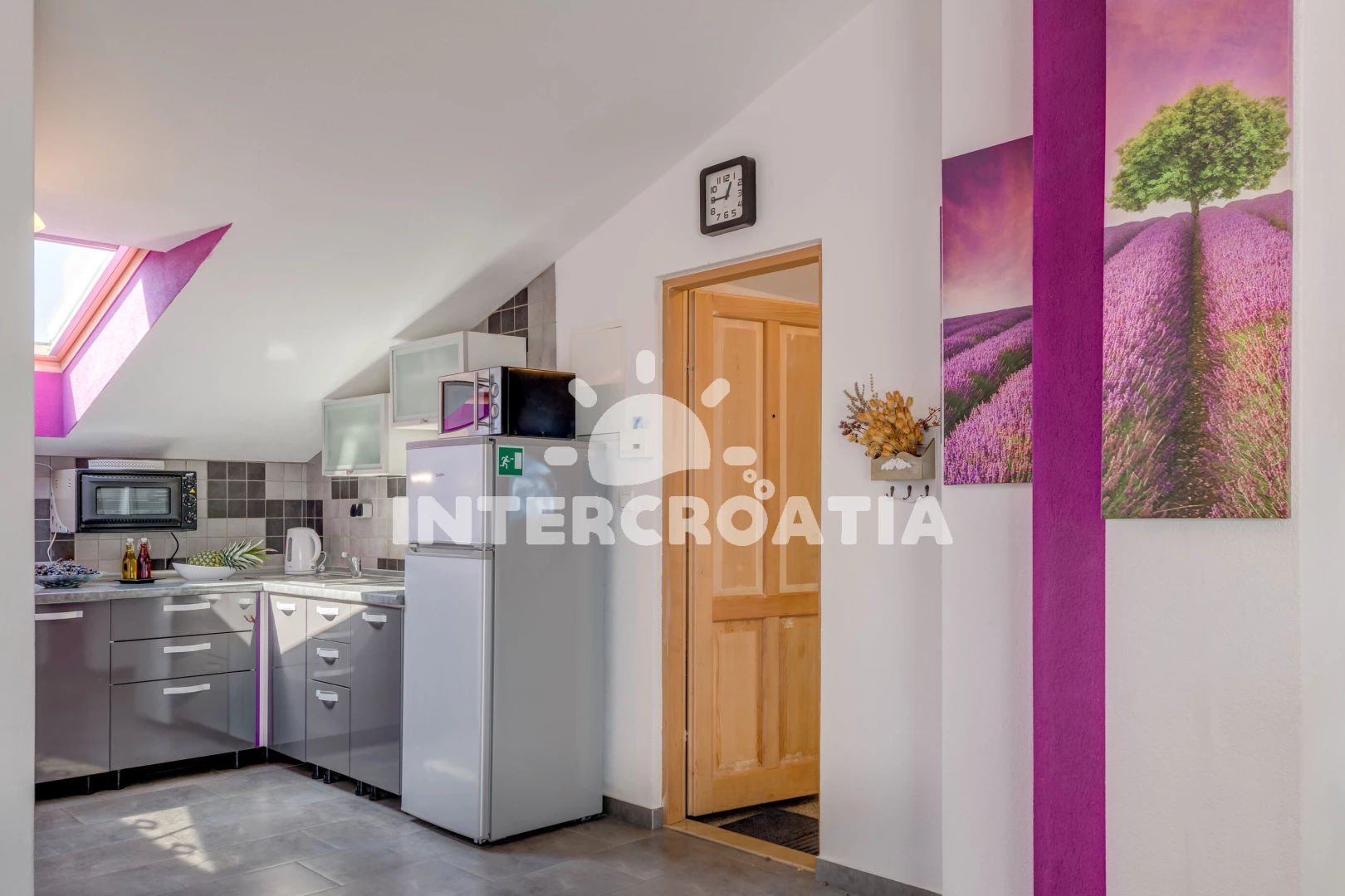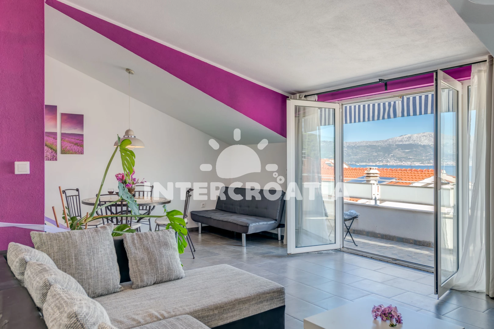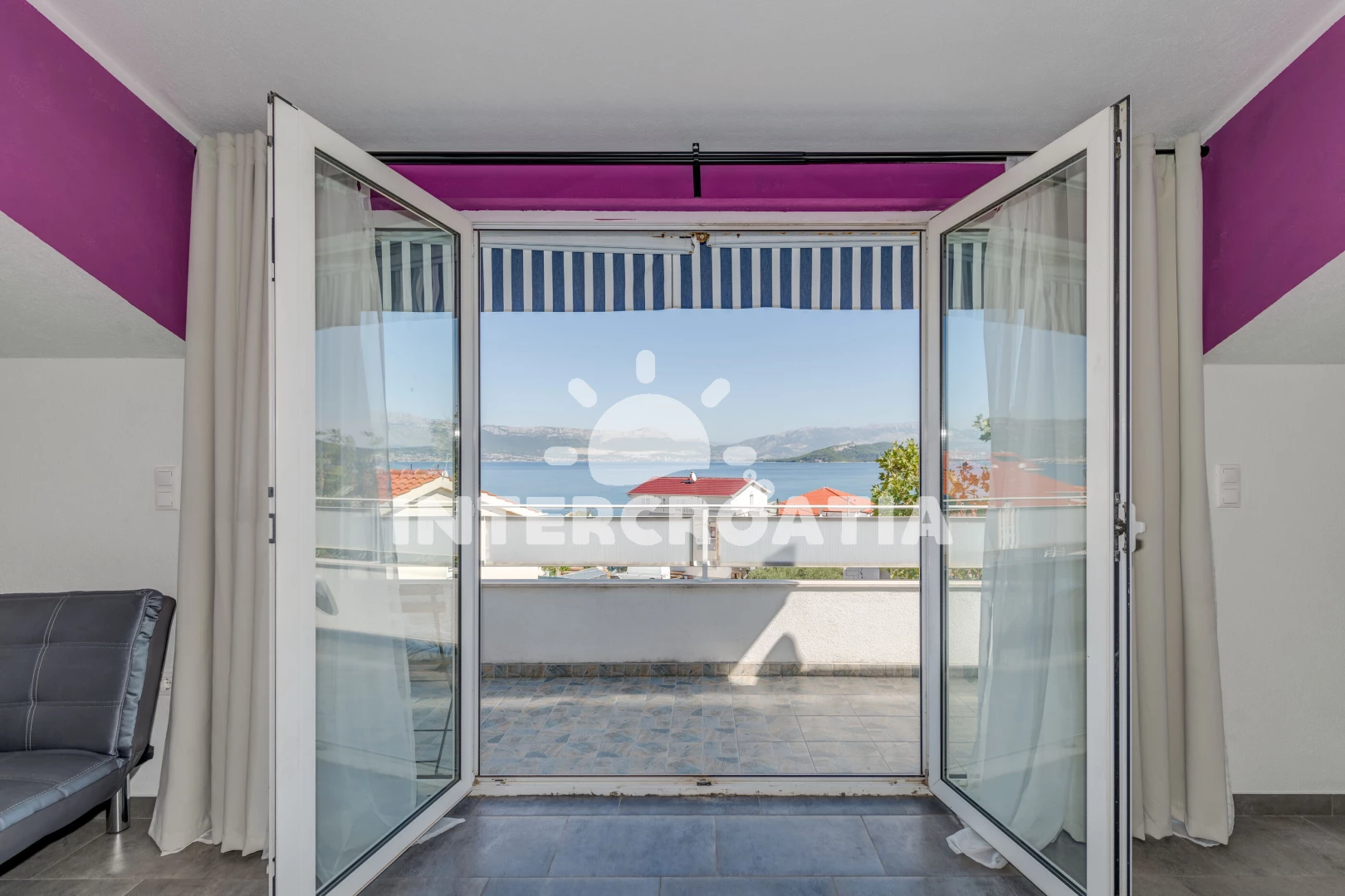 Apartmán (77 m2) s balkonem, a výhledem na moře. Nachází se ve 2. patře objektu. Apartmán má 1 ložnici a je vhodný pro až 4 osoby. Kuchyňská linka je vybavena varnou deskou, troubou, mikrovlnnou…