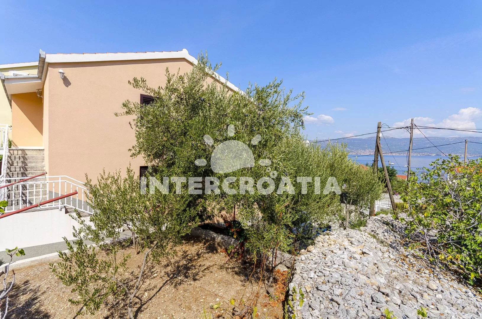 Vzdálenosti: Moře 60 m, pláž 60 m (oblázková a betonové desky), centrum 7 km, obchod 50 m, pošta 1 km, lékárna 7 km, zdravotní středisko 1 km, restaurace 80 m, směnárna 7 km, banka 7 km, muzeum 7 km, bar 80 m, čerpací stanice 12 km, trajekt 32 km (Split), letiště 15 km (Split).