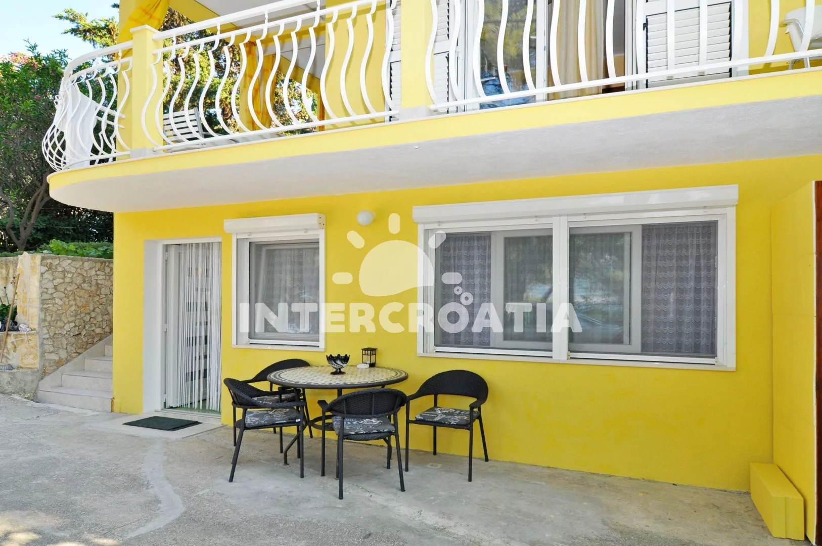 Samostatně stojící dům s dvěma apartmány a polohou přímo u moře. Kolem domu venkovní posezení na terase a zděný gril. Parkovací místa u objektu.