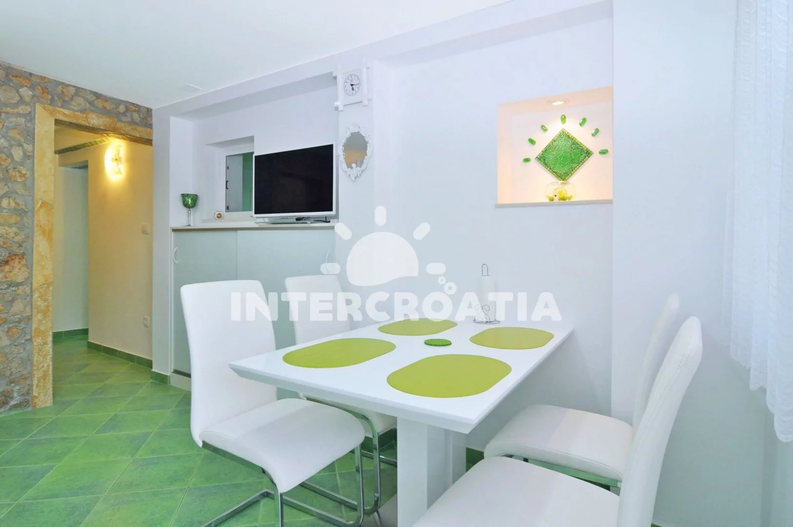 Az apartman teljesen felszerelt, tágas, világos, rendkívül tiszta és kényelmes. Ez a hatodik horvát apartmanunk ebben az árfekvésben az utóbbi évek alatt és messze kimagaslott a többiek közül. A házigazda nagyon kedves és minden téren segítőkész volt. A tenger nagyon közel van és a saját partszakaszon csak az apartmanokban lakók fürdenek. A bolt 600 m, legközelebbi étterem 500 m, jó étterem 1100 m Slatineben (Neverin)