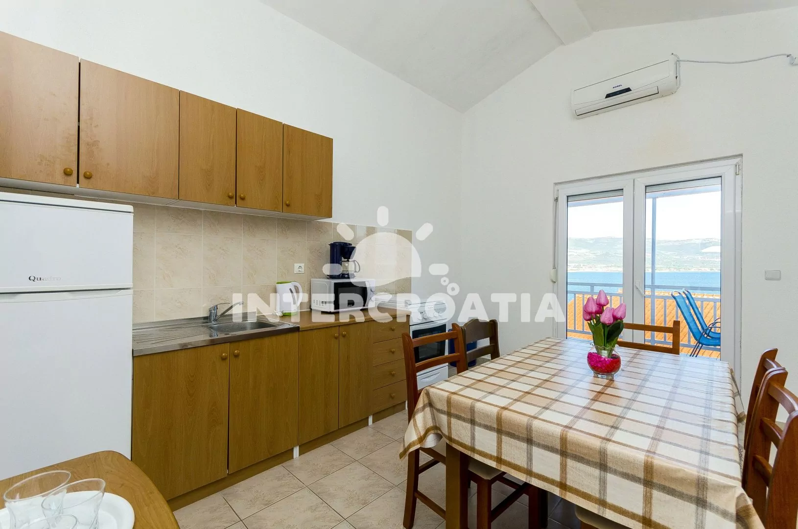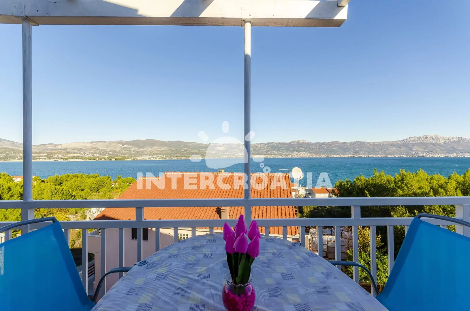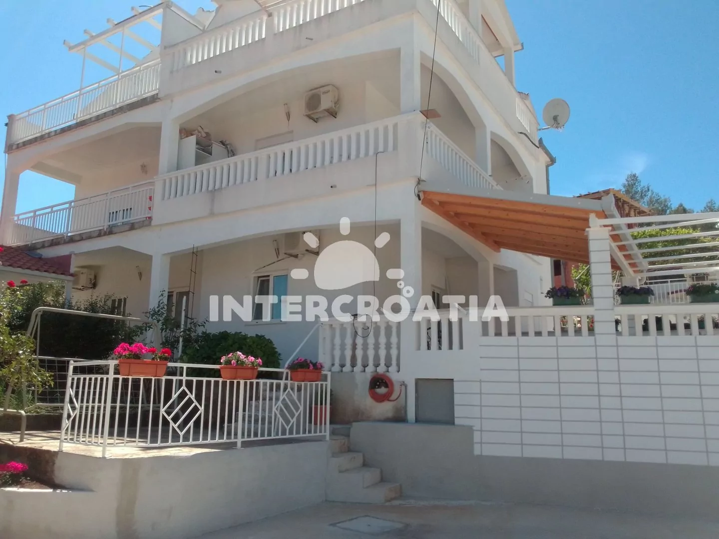 Městečko Slatine se rozkládá ve východní části ostrova Čiovo, 8 km od centra Trogiru. Po 260 m od apartmánového domu přijdete k oblázkové pláži a průzračně čistému moři.