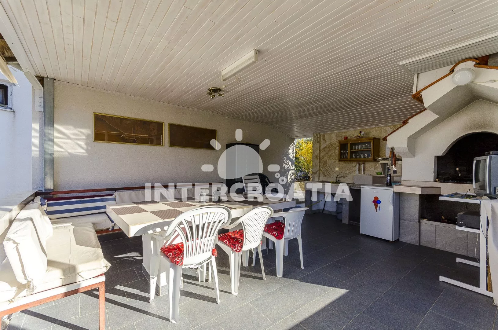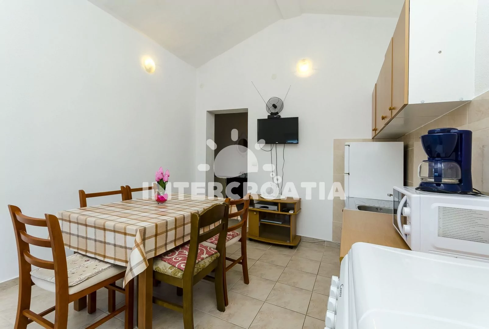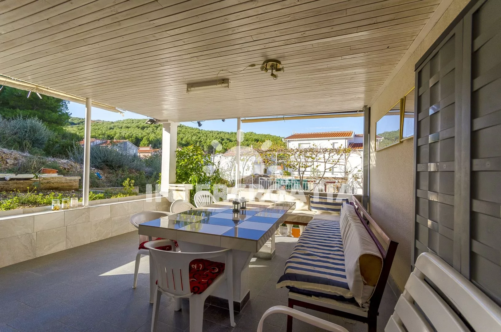 Městečko Slatine se rozkládá ve východní části ostrova Čiovo, 8 km od centra Trogiru. Po 260 m od apartmánového domu přijdete k oblázkové pláži a průzračně čistému moři.