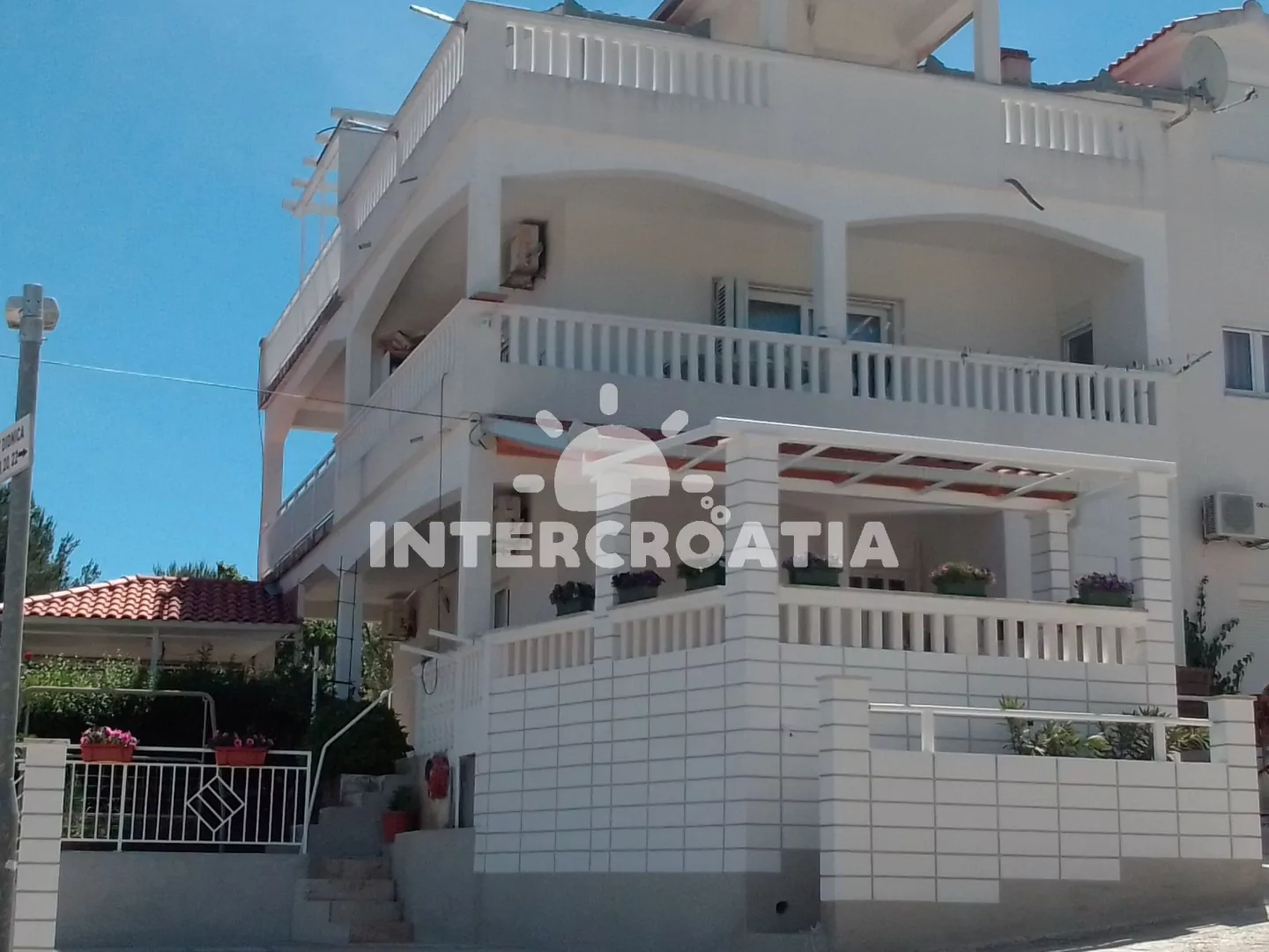 Apartmánový dům v klidnější lokalitě, se nachází vzdušnou čarou 200 m a pěší chůzí 260 m od moře a oblázkové pláže s betonovými moly. Dům nabízí ubytování v příjemně zařízených a klimatizovaných apartmánech s lodžiemi a venkovním posezením. K dispozici je společná terasa s pergolou, zahradní kuchyní, posezením a zděným grilem. Parkovací místa pro automobily u domu.