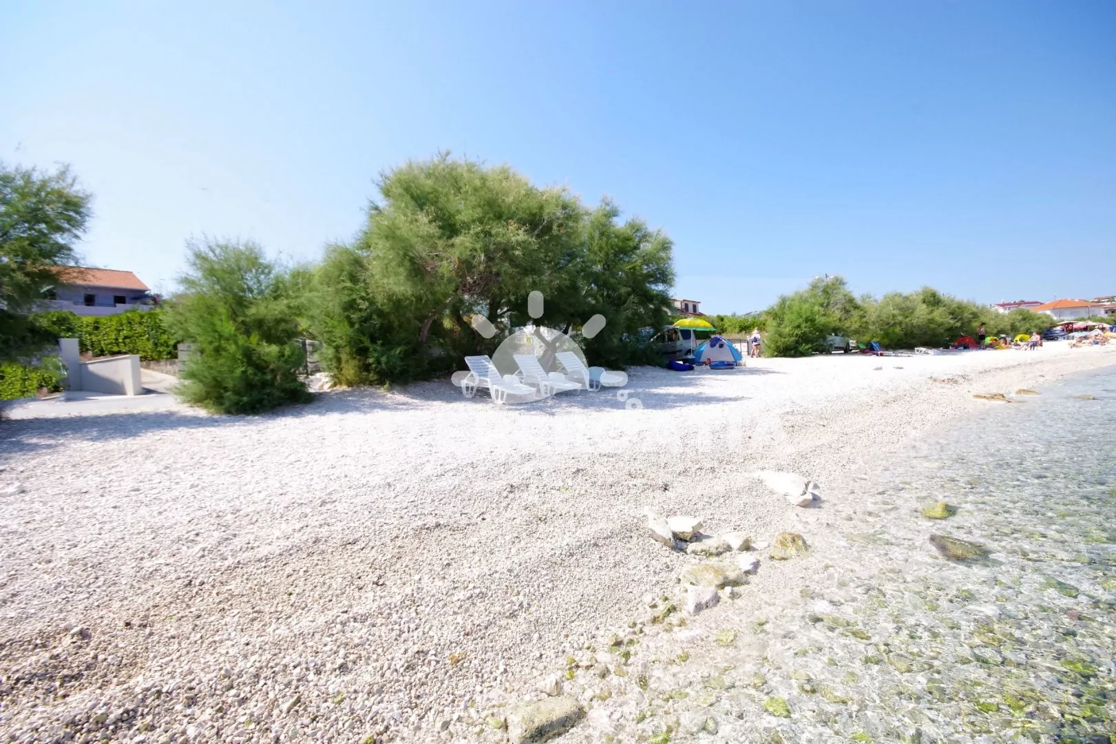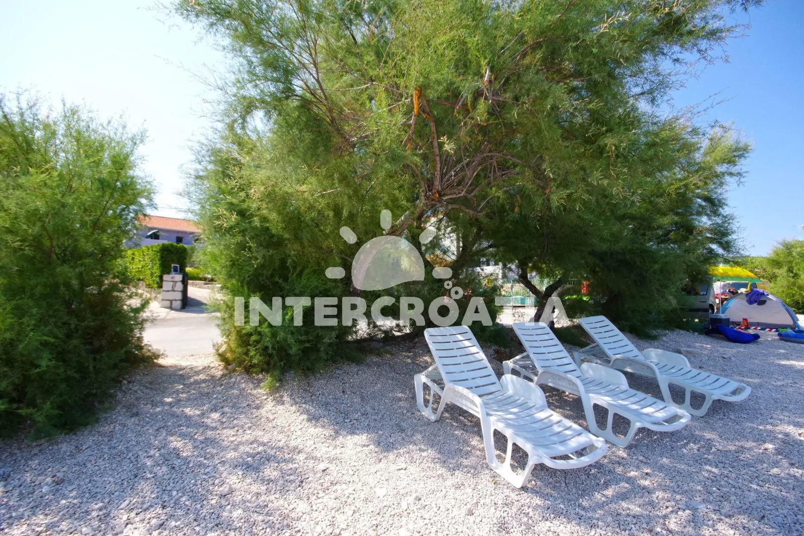 Jedinečně umístěný apartmánový domek přímo u moře. Dům má oplocený pozemek se zahradou a brankou, ze které vyjdete přímo u oblázkové pláže a moře. Dům nabízí ubytování ve 2 klimatizovaných apartmánech se společnou lodžií. Parkovací místa pro automobily u domu.