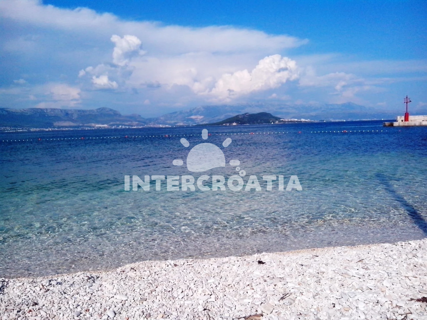 Vzdálenosti: Moře 150 m, pláž 150 m (písčitá, skalnatá, oblázková, větší kamení a betonové desky), centrum 150 m, restaurace 150 m, bar 150 m, půjčovna motorových člunů 150 m, veřejná doprava 150 m, supermarket 150 m, lékárna 200 m, ambulance 200 m, pošta 200 m, směnárna 200 m, čerpací stanice 8 km, banka 8 km, muzeum 8 km, letiště (Split) 10,0 km, trajekt (Split) 20 km,