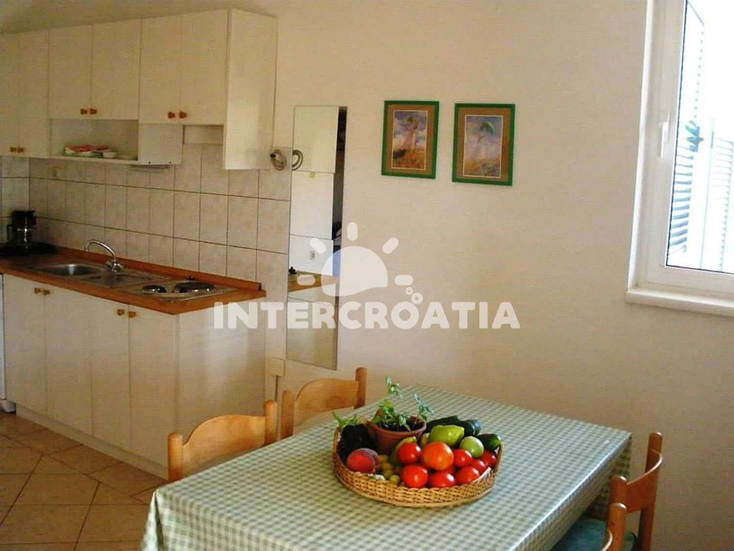 Apartmán se nachází 150 m od moře a pláže. Pláž je písčitá, skalnatá, oblázková, větší kamení a betonové desky. U objektu je k dispozici společná zahrada s posezením a grilem. Parkování je před domem.