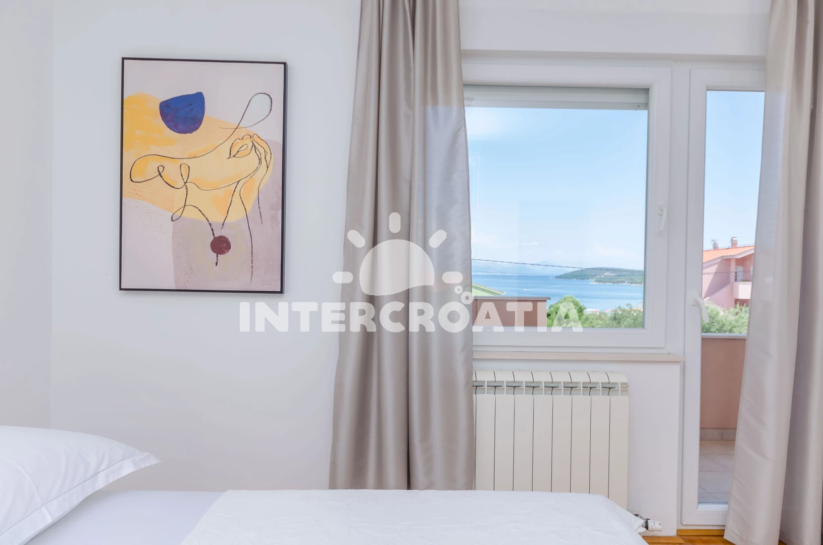 Apartmán (90 m2) s balkonem, a výhledem na moře. Nachází se v 1. patře objektu. Apartmán má 2 ložnice a je vhodný pro až 5 osob. Kuchyňská linka je vybavena varnou deskou, troubou, kávovarem, myčkou…