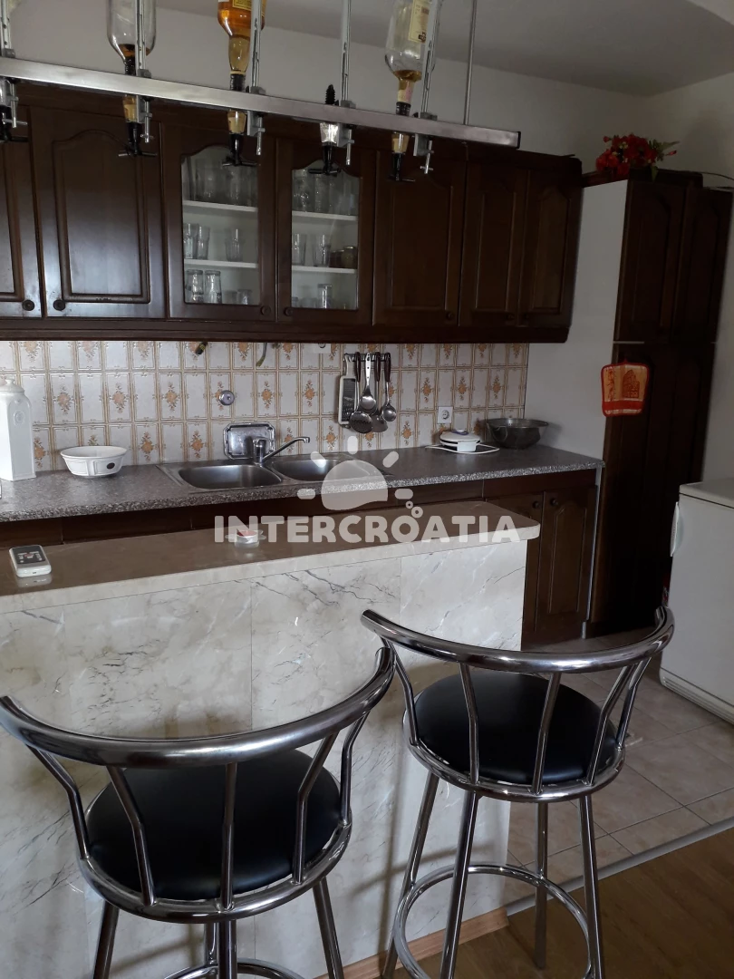 Apartmán se nachází 7440 m od moře a pláže. Pláž je písčitá, skalnatá, oblázková, větší kamení a betonové desky. Parkování je před domem.