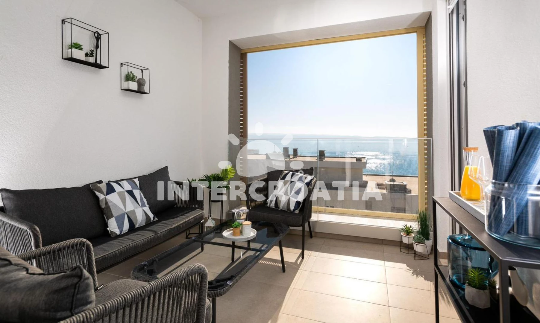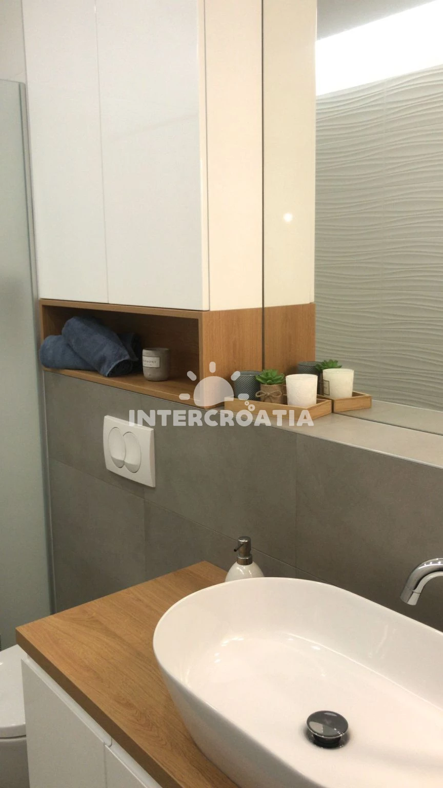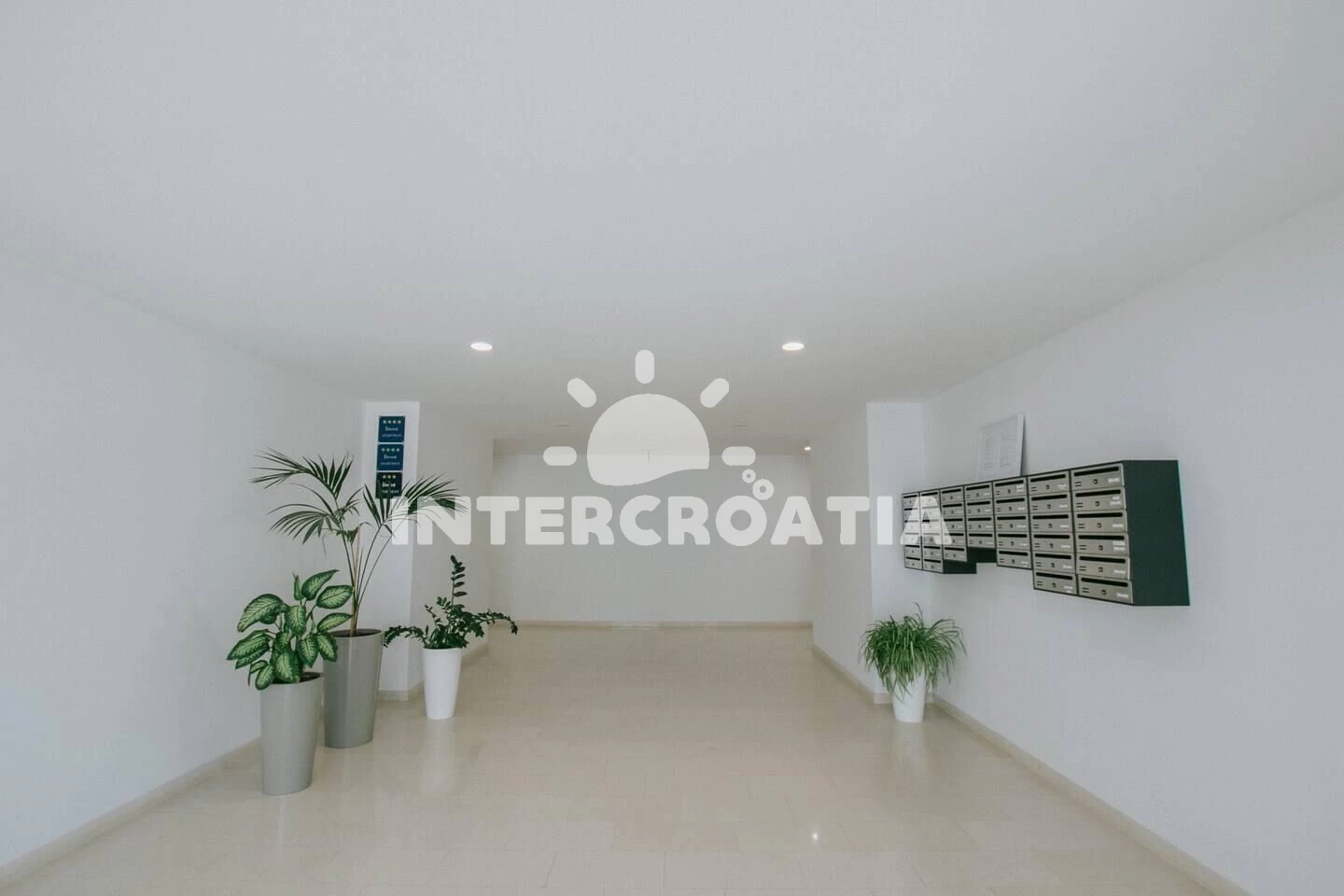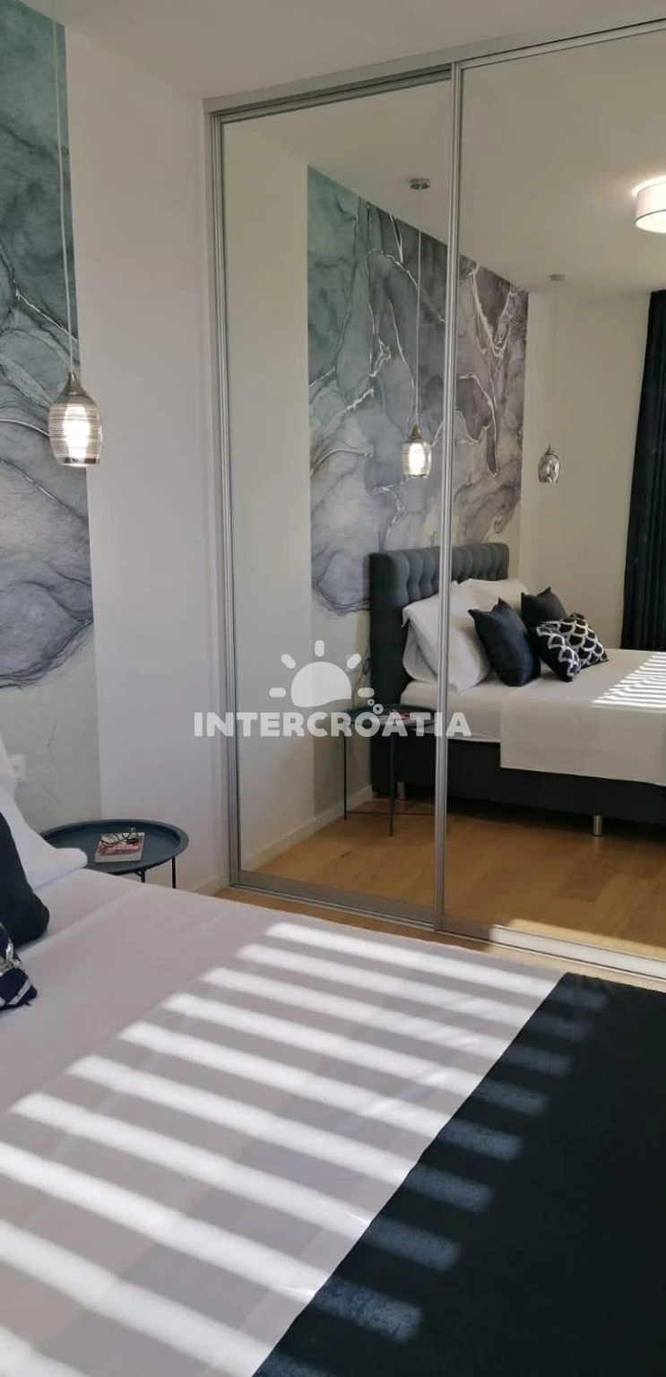 Apartmán (56 m2) s výhledem na moře. Nachází se ve 3. patře objektu. Apartmán má 1 ložnici a je vhodný pro až 3 osoby. Kuchyňská linka je vybavena varnou deskou, troubou, kávovarem, myčkou na nádobí, mikrovlnnou troubou, rychlovarnou konvicí, nádobím, lednicí. V obývací místnosti je rozložitelná pohovka (extra lůžko pro 1 osobu). K dispozici televize. Ložnice s dvoulůžkem. Koupelna se sprchovým koutem, umyvadlem, fénem a WC.