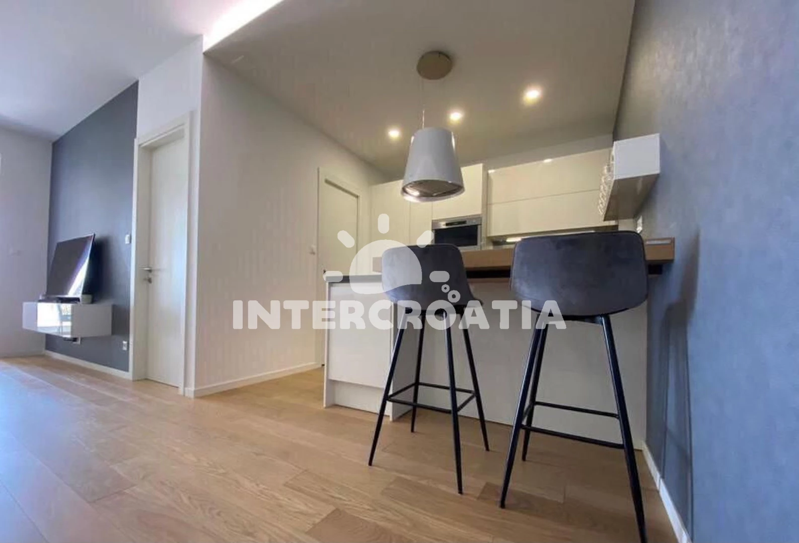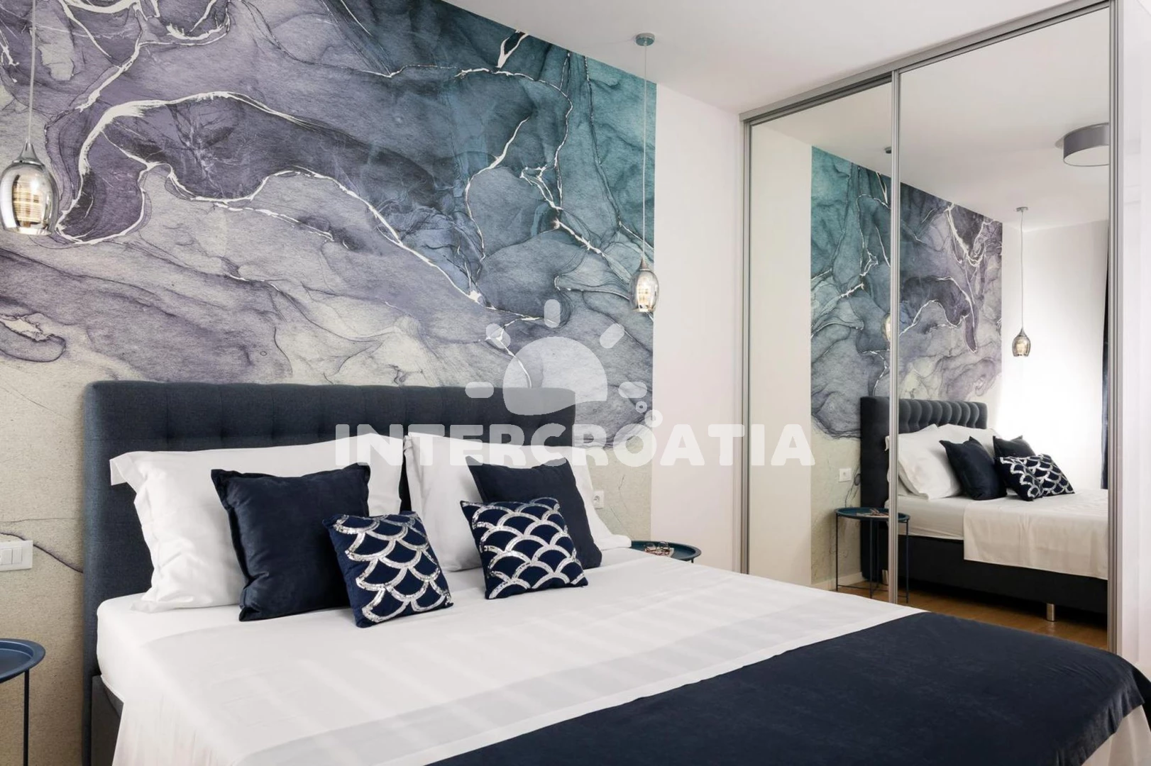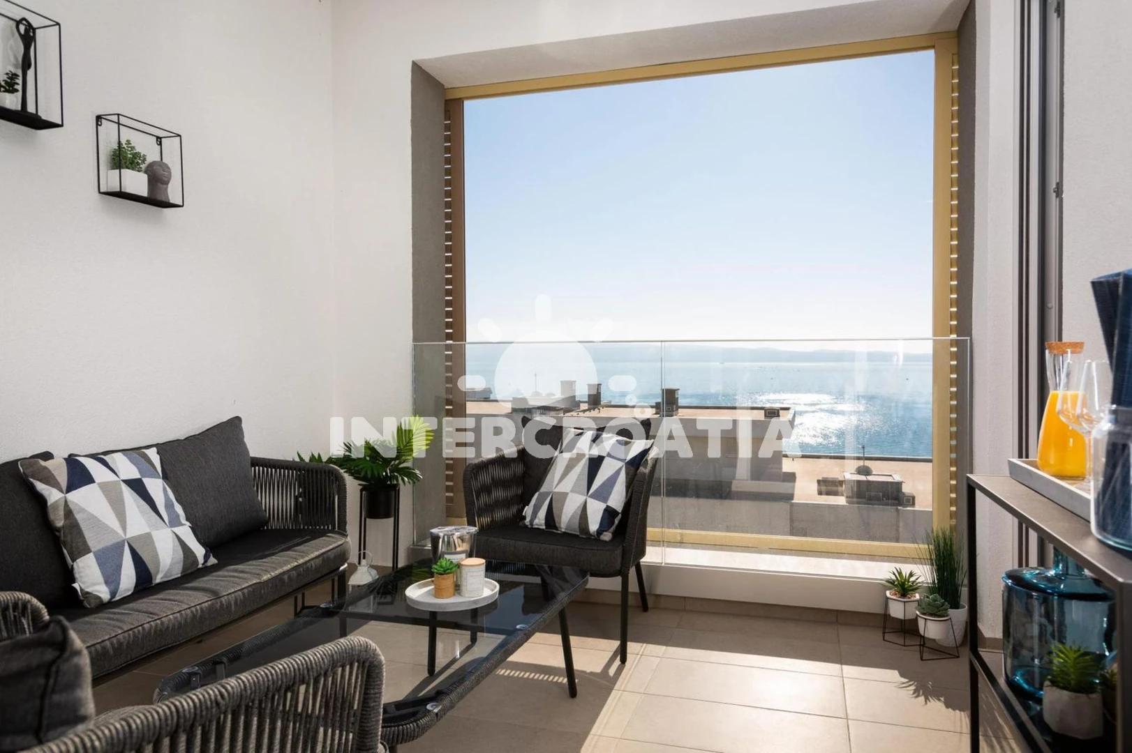 Apartmán (56 m2) s výhledem na moře. Nachází se ve 3. patře objektu. Apartmán má 1 ložnici a je vhodný pro až 3 osoby. Kuchyňská linka je vybavena varnou deskou, troubou, kávovarem, myčkou na nádobí, mikrovlnnou troubou, rychlovarnou konvicí, nádobím, lednicí. V obývací místnosti je rozložitelná pohovka (extra lůžko pro 1 osobu). K dispozici televize. Ložnice s dvoulůžkem. Koupelna se sprchovým koutem, umyvadlem, fénem a WC.