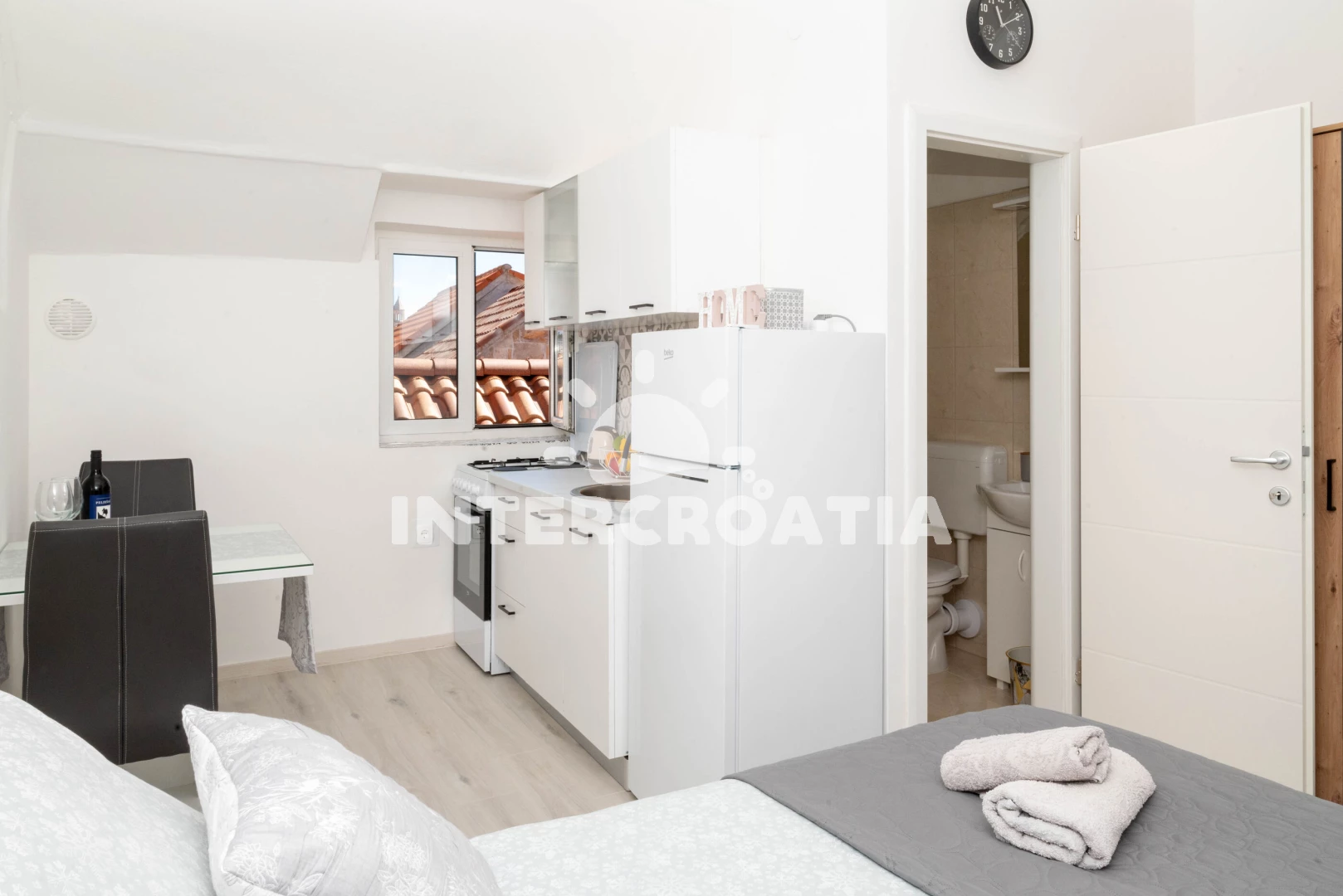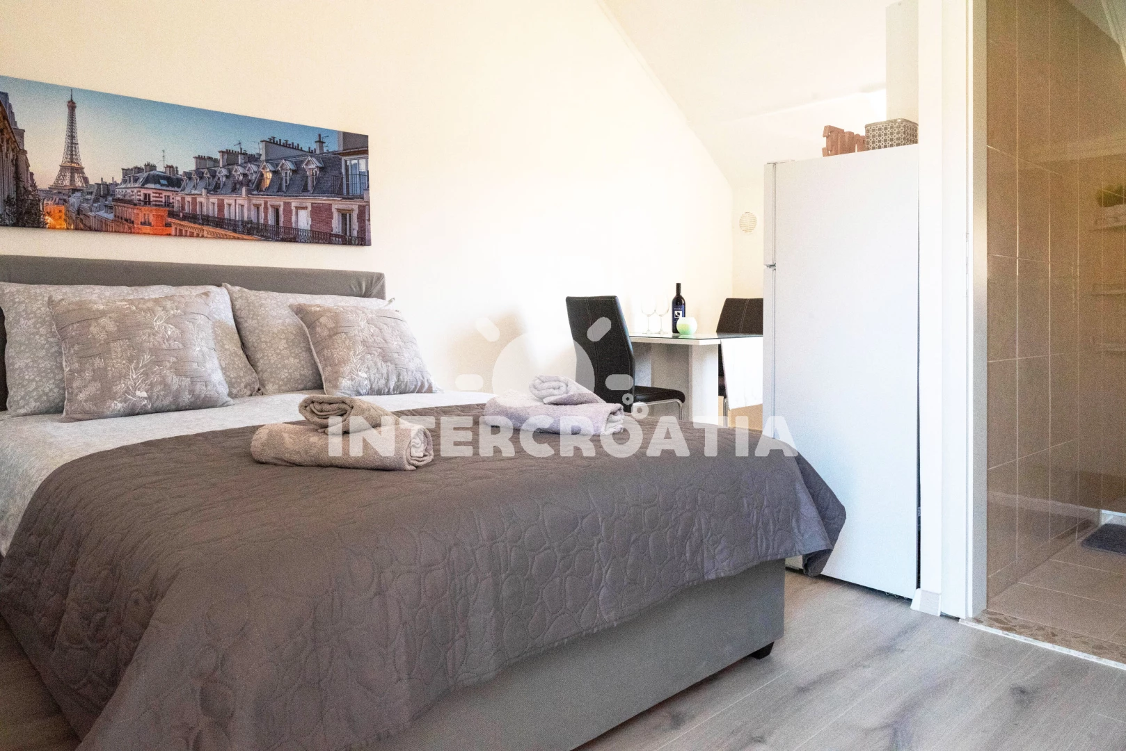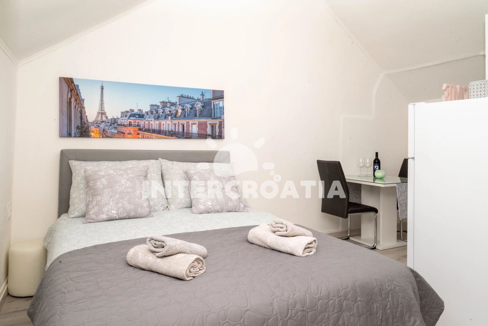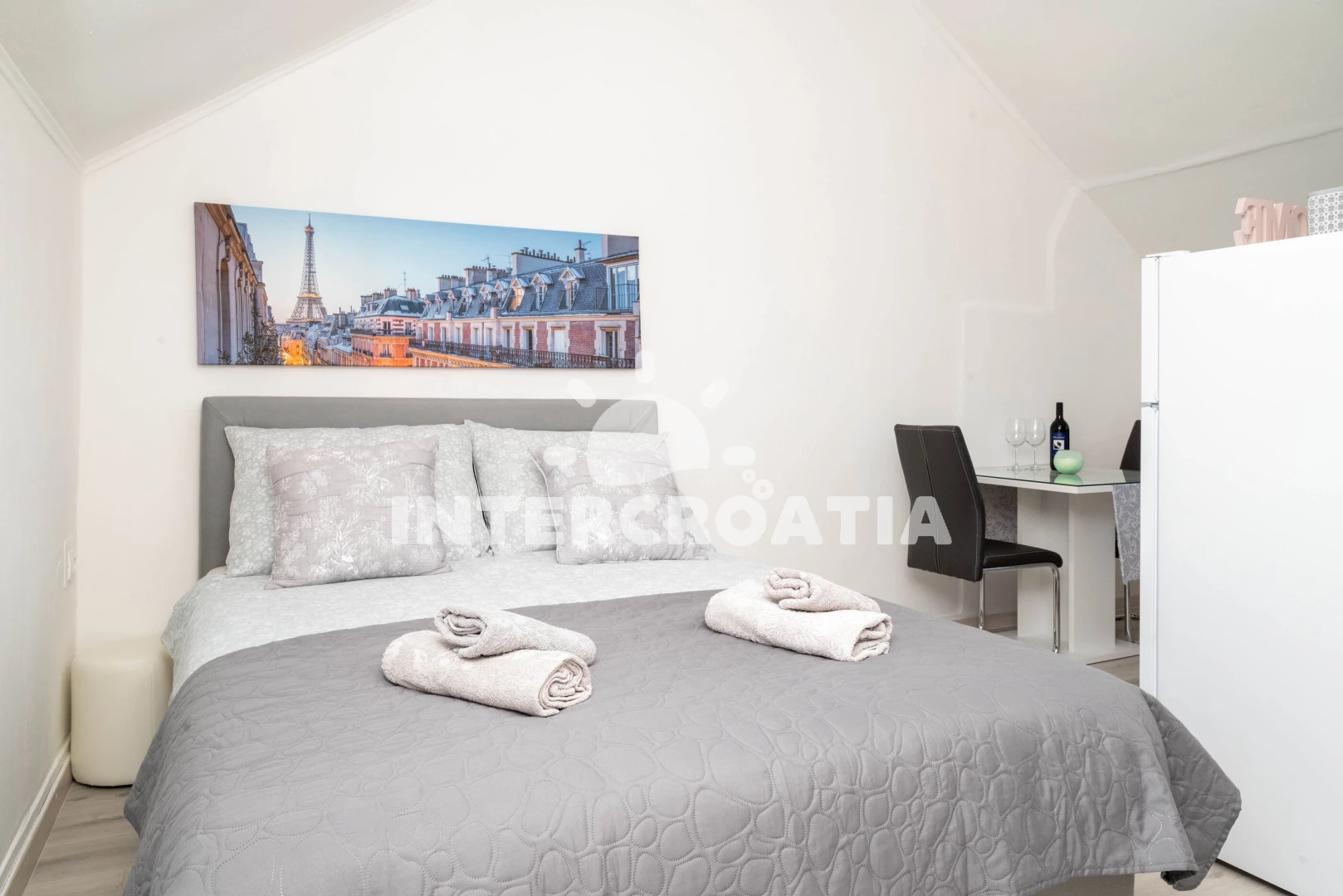 Apartmán typu studio (23 m2) s balkonem. Nachází se ve 2. patře objektu. Kuchyňská linka je vybavena varnou deskou, rychlovarnou konvicí, nádobím, lednicí, mrazákem. K dispozici dvoulůžko, televize,… Více informací