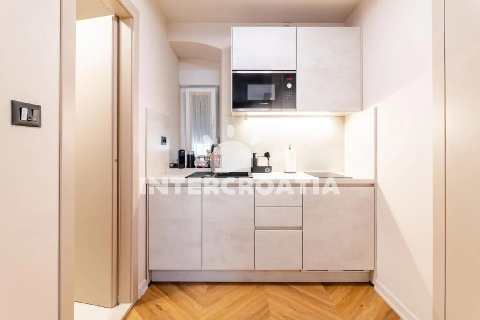 Apartmán (25 m2) typu studio. Nachází se v 1. patře objektu. Kuchyňská linka je vybavena varnou deskou, kávovarem, toustovačem, myčkou na nádobí, mikrovlnnou troubou, rychlovarnou konvicí, nádobím,…