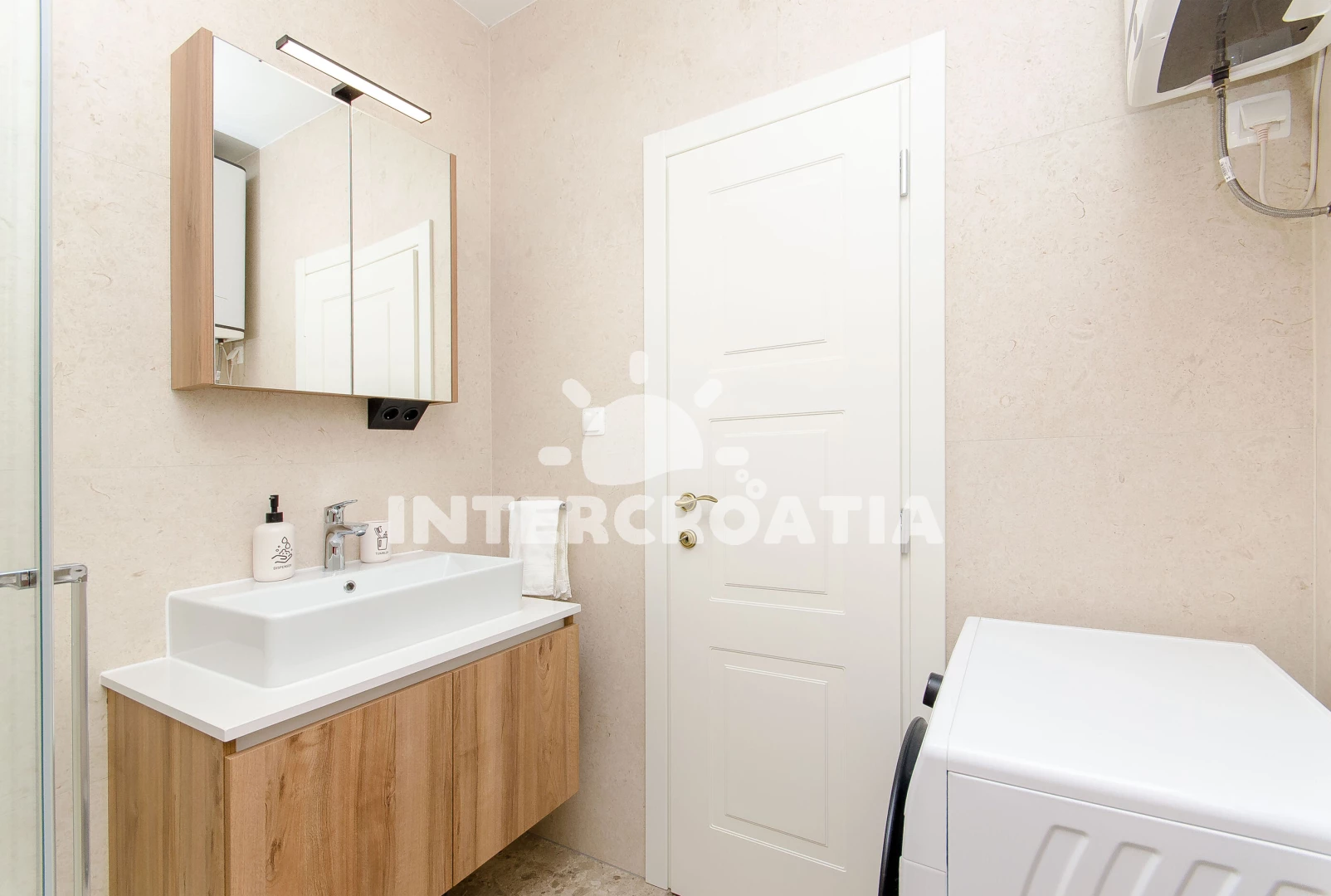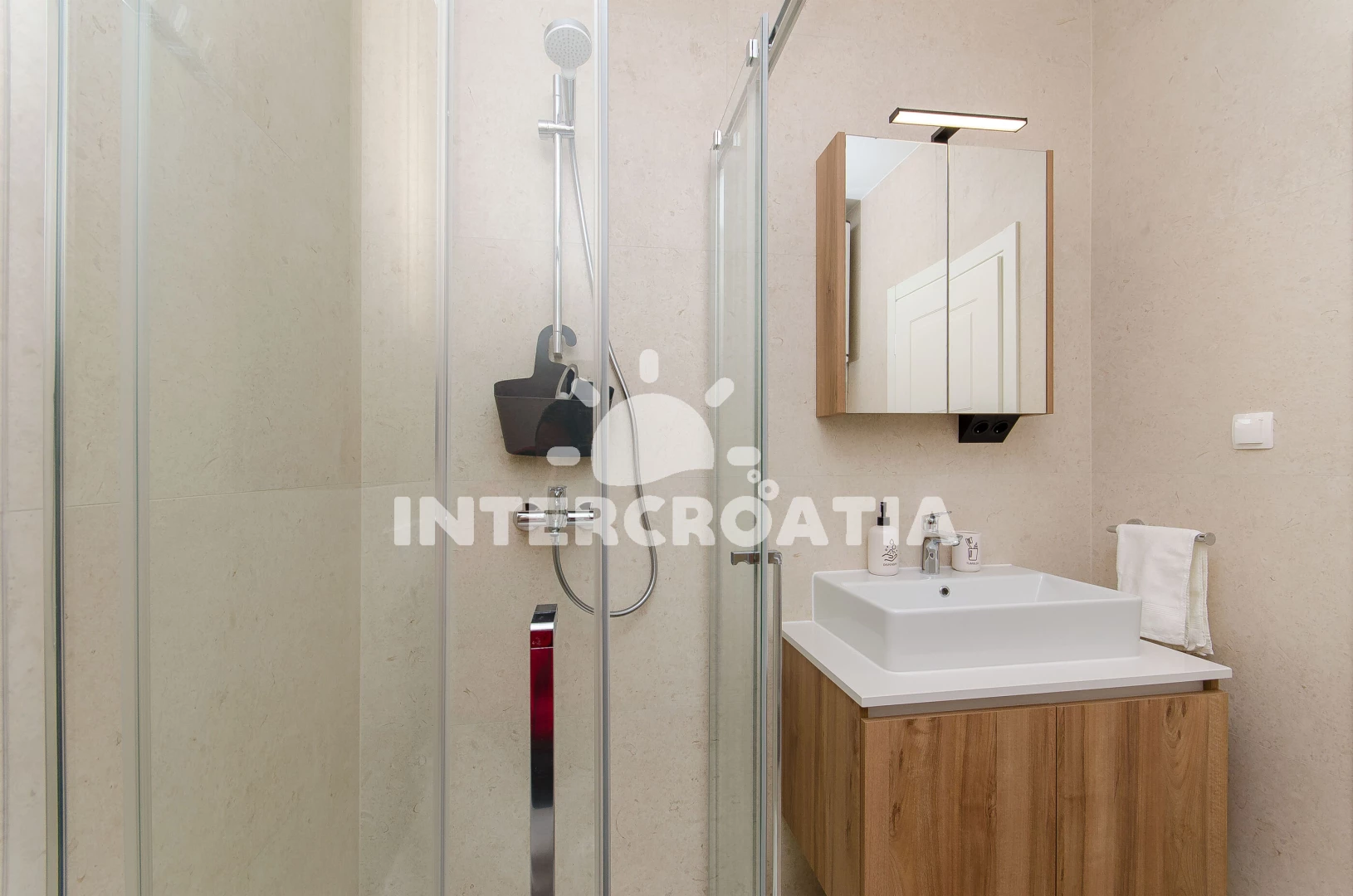 Vzdálenosti: Moře 100 m, pláž 100 m (oblázky), supermarket 50 m, veřejná doprava 100 m, bar 100 m, restaurace 100 m, diskotéka 100 m, lékárna 400 m, banka 400 m, pošta 400 m, ambulance 800 m, směnárna 1 km, čerpací stanice 1,5 km, trajekt (Split) 3 km, centrum 3 km, letiště (Split) 21 km,