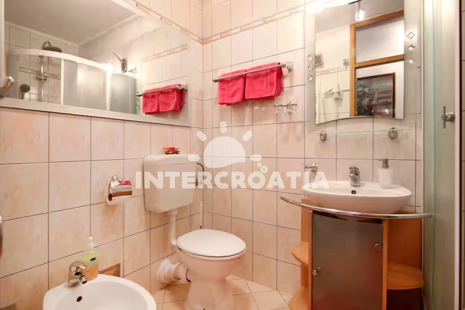 Vzdálenosti: Moře 100 m, pláž 300 m (oblázky), restaurace 67 m, půjčovna kol 140 m, půjčovna motorových člunů 200 m, tenisové kurty 200 m, bar 260 m, supermarket 300 m, potápění 400 m, pošta 450 m, lékárna 500 m, ambulance 500 m, čerpací stanice 800 m, banka 1 km, trajekt (Split) 1,4 km, centrum 1,5 km, diskotéka 1,8 km, muzeum 1,8 km, marina 2 km, letiště (Split) 23,4 km,