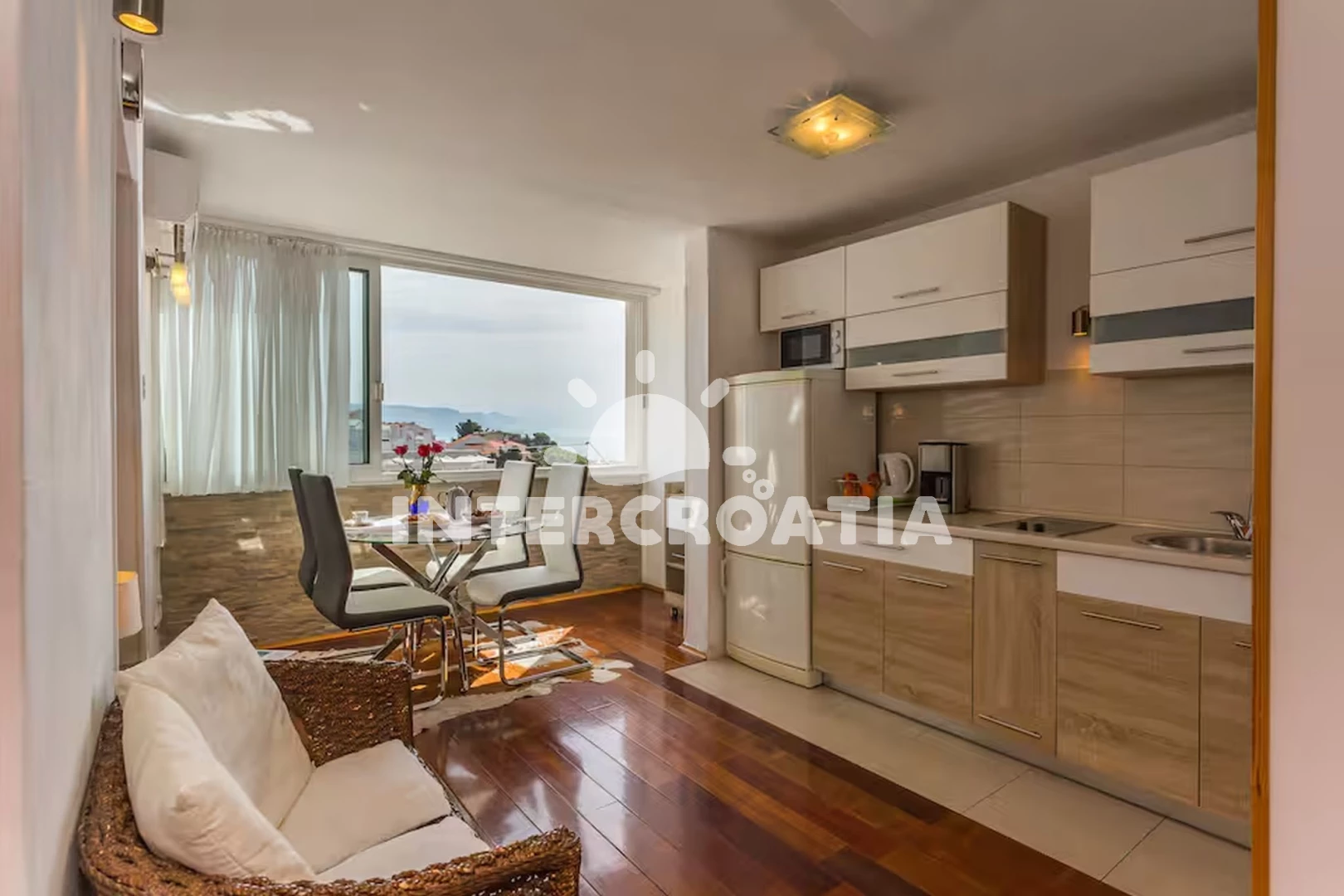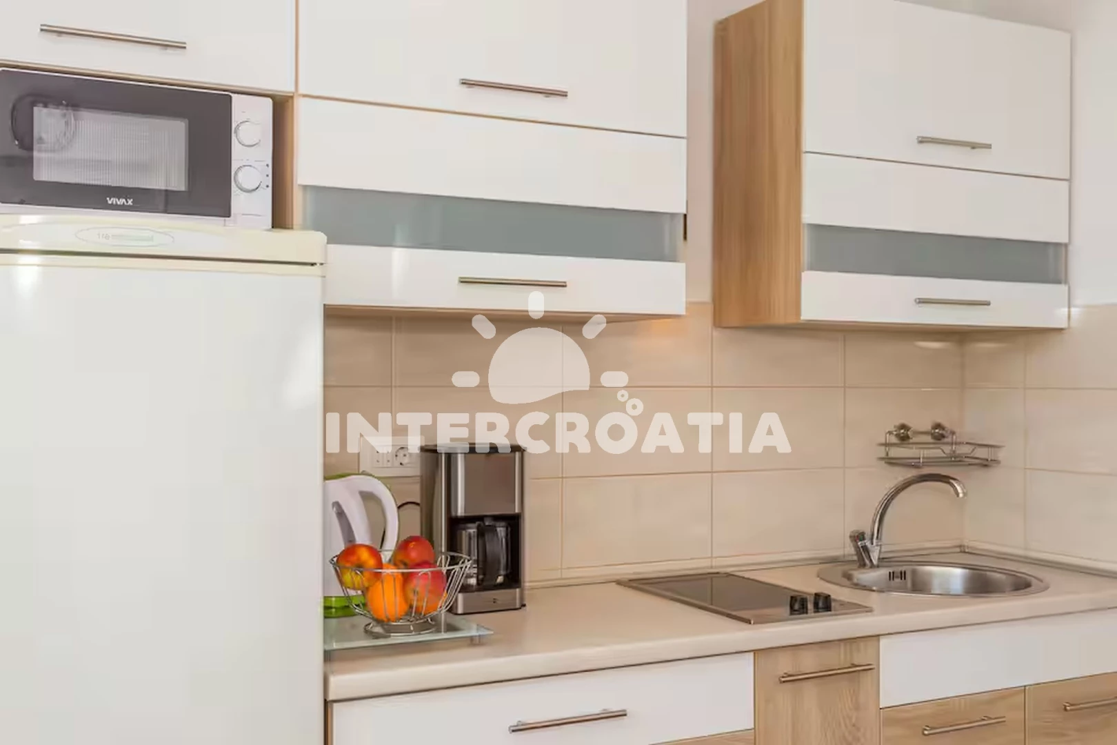 Apartmán (60 m2) s výhledem na moře. Nachází se ve 3. patře objektu. Apartmán má 2 ložnice a je vhodný pro až 4 osoby. Kuchyňská linka je vybavena varnou deskou, kávovarem, mikrovlnnou troubou,…