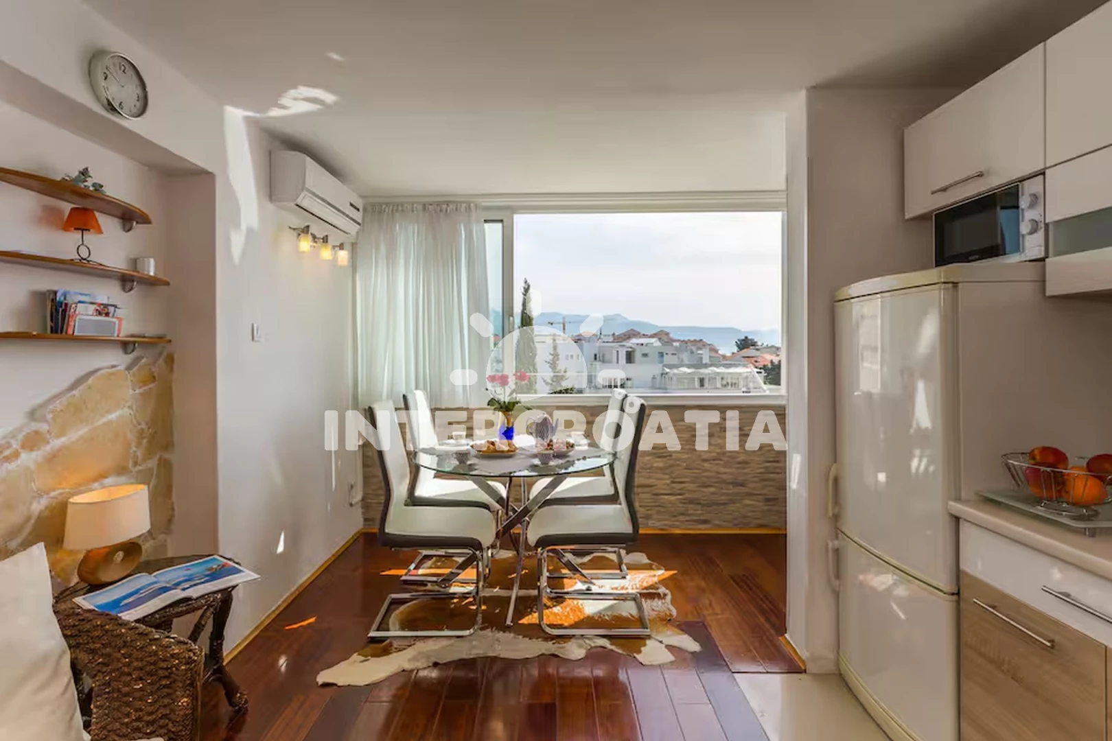 Vzdálenosti: Moře 190 m, pláž 190 m (písek), restaurace 200 m, supermarket 200 m, bar 200 m, veřejná doprava 300 m, půjčovna kol 300 m, lékárna 300 m, tenisové kurty 300 m, potápění 400 m, půjčovna motorových člunů 400 m, ambulance 500 m, čerpací stanice 700 m, banka 750 m, pošta 900 m, trajekt (Split) 1,5 km, diskotéka 1,5 km, centrum 1,5 km, muzeum 1,5 km, marina 5,5 km, letiště (Split) 23 km,