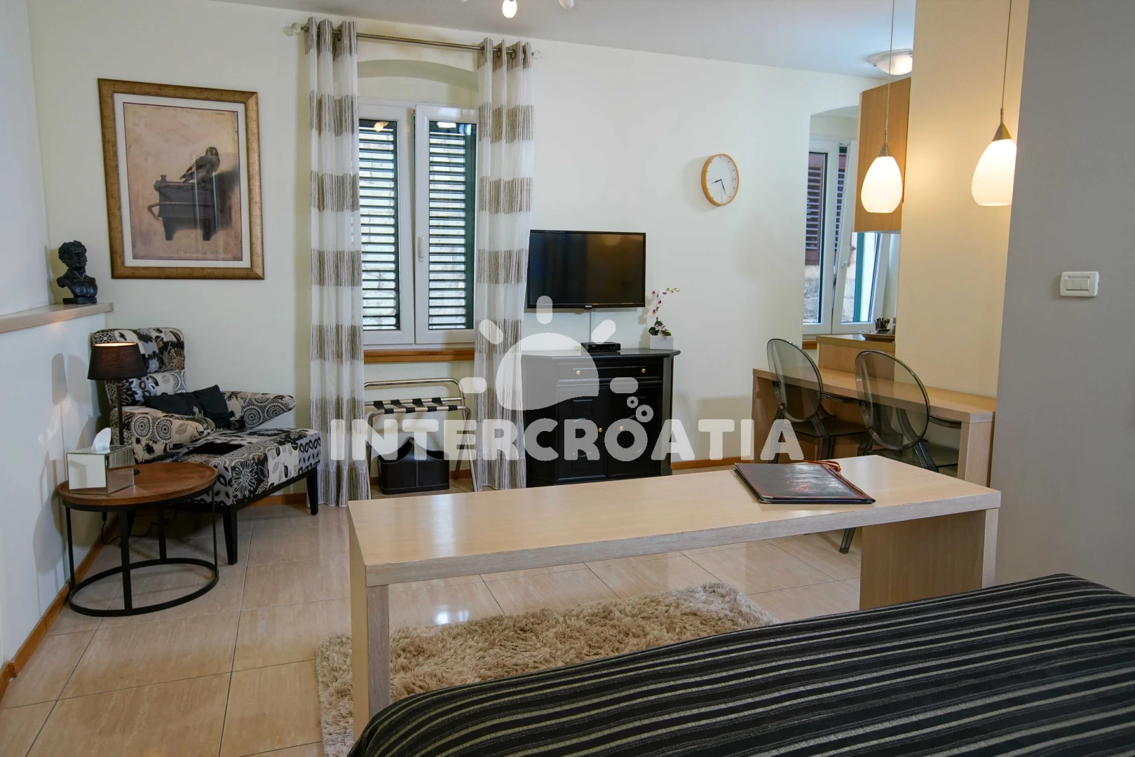 Domácí zvířata nejsou povolena. V ceně pobytu zahrnuto: WiFi, klimatizace/topení, žehlička, povlečení, ručníky, závěrečný úklid a pobytová taxa. Dětská postýlka na požádání u pronajímatele. Registrační poplatek a pobytová taxa se připočte automaticky k ceně objednávky. Pronajímatel se dorozumí chorvatsky a anglicky.