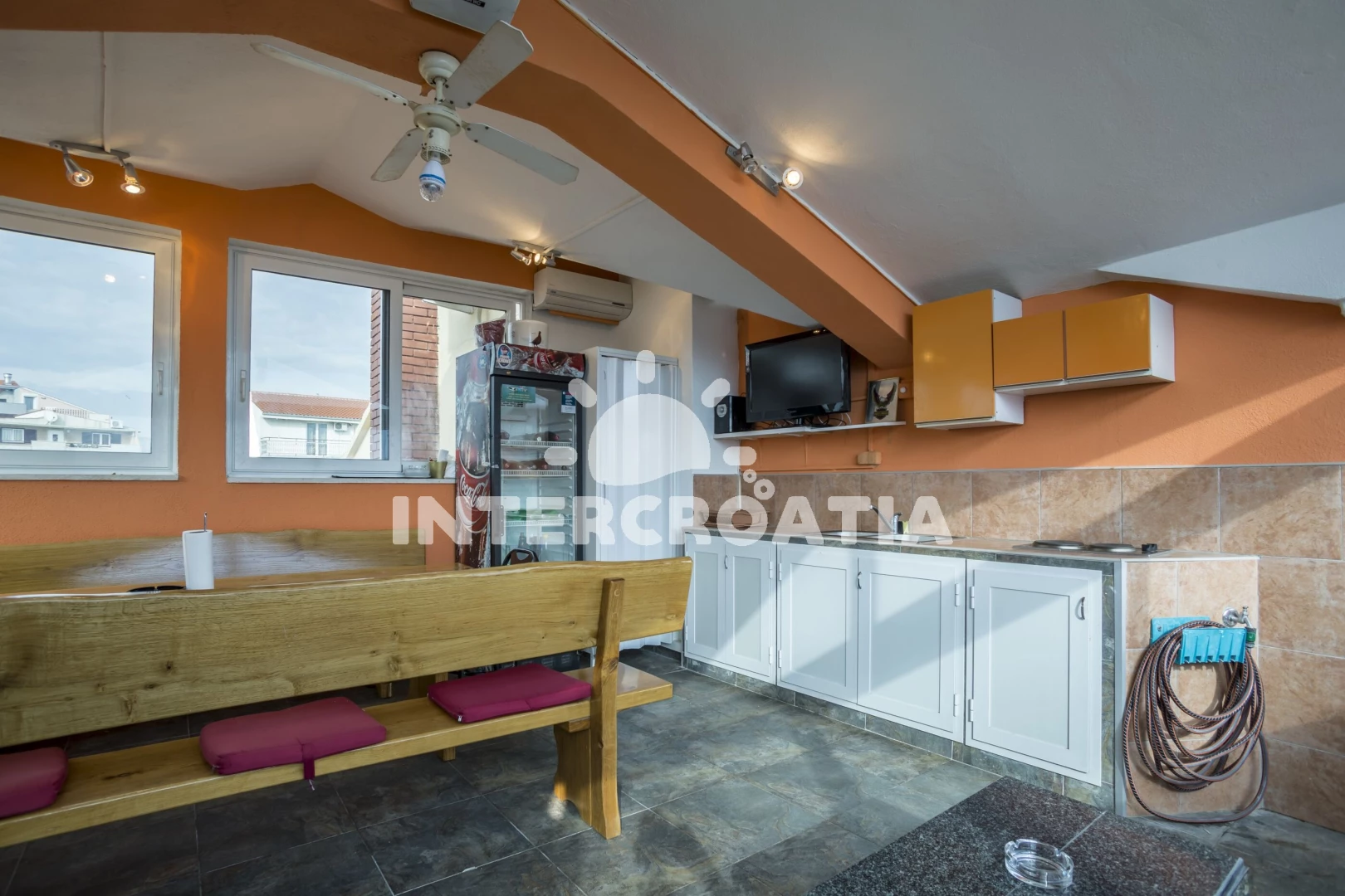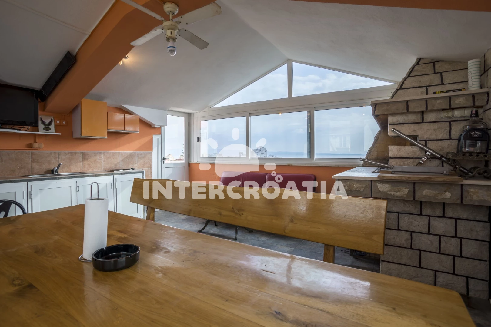 Apartmán se nachází 1900 m od moře a pláže. Pláž je skalnatá a oblázková. U objektu je k dispozici společná zahrada s posezením a grilem. Parkování je před domem.