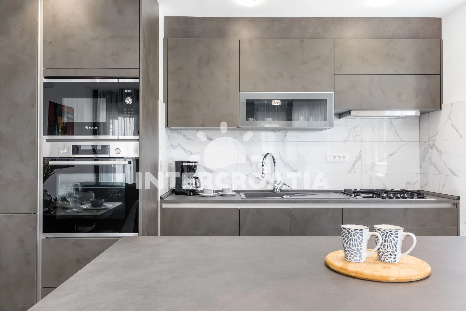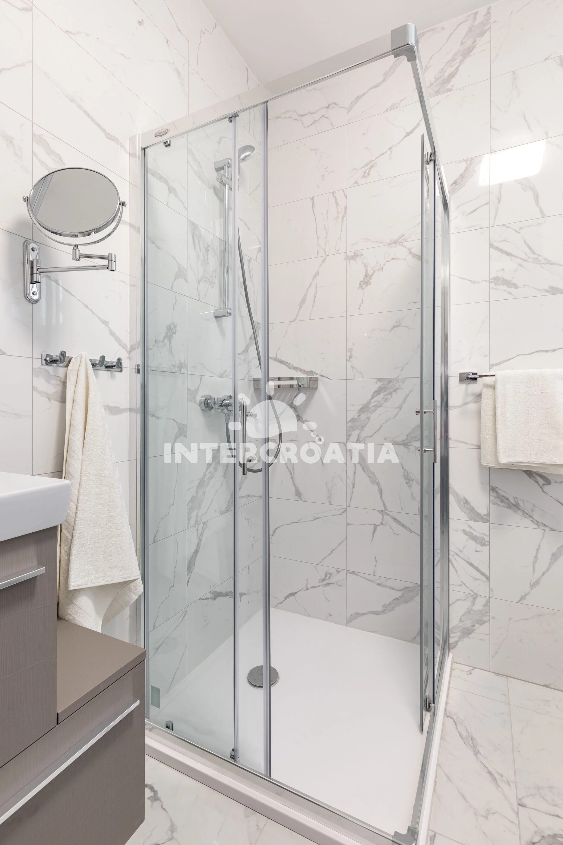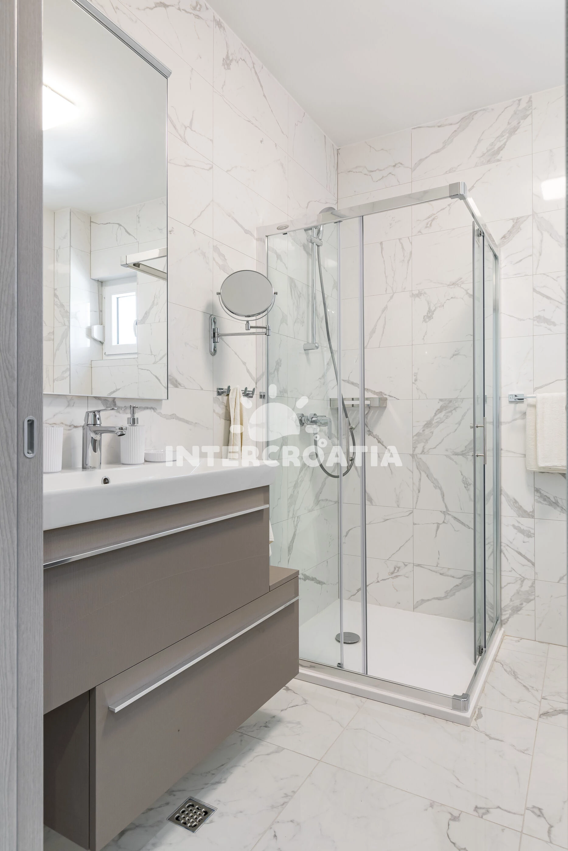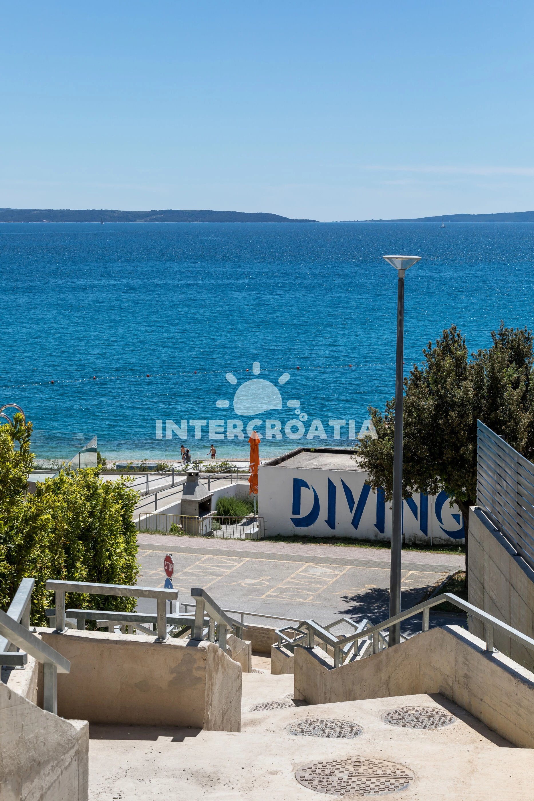 Vzdálenosti: Moře 250 m, pláž 250 m (oblázky), restaurace 100 m, bar 100 m, veřejná doprava 200 m, pošta 300 m, supermarket 400 m, banka 400 m, lékárna 500 m, ambulance 700 m, muzeum 1 km, marina 2 km, čerpací stanice 2 km, diskotéka 2,5 km, centrum 3 km, trajekt (Split) 4,5 km, letiště (Split) 23 km,