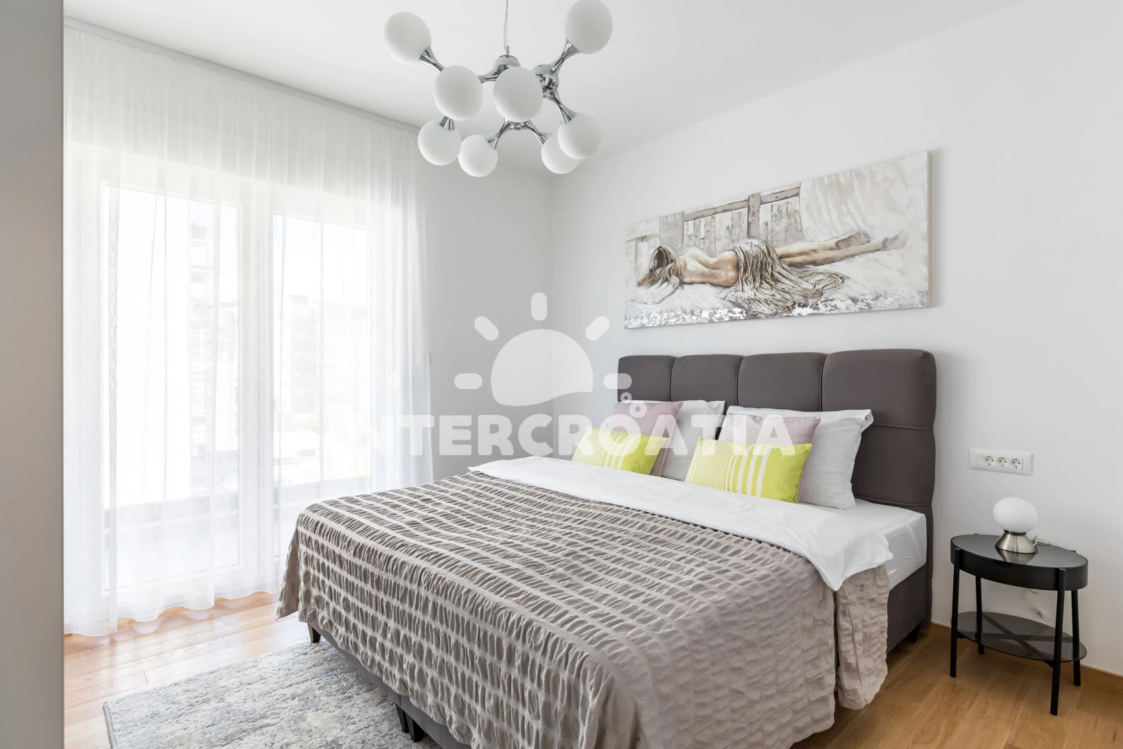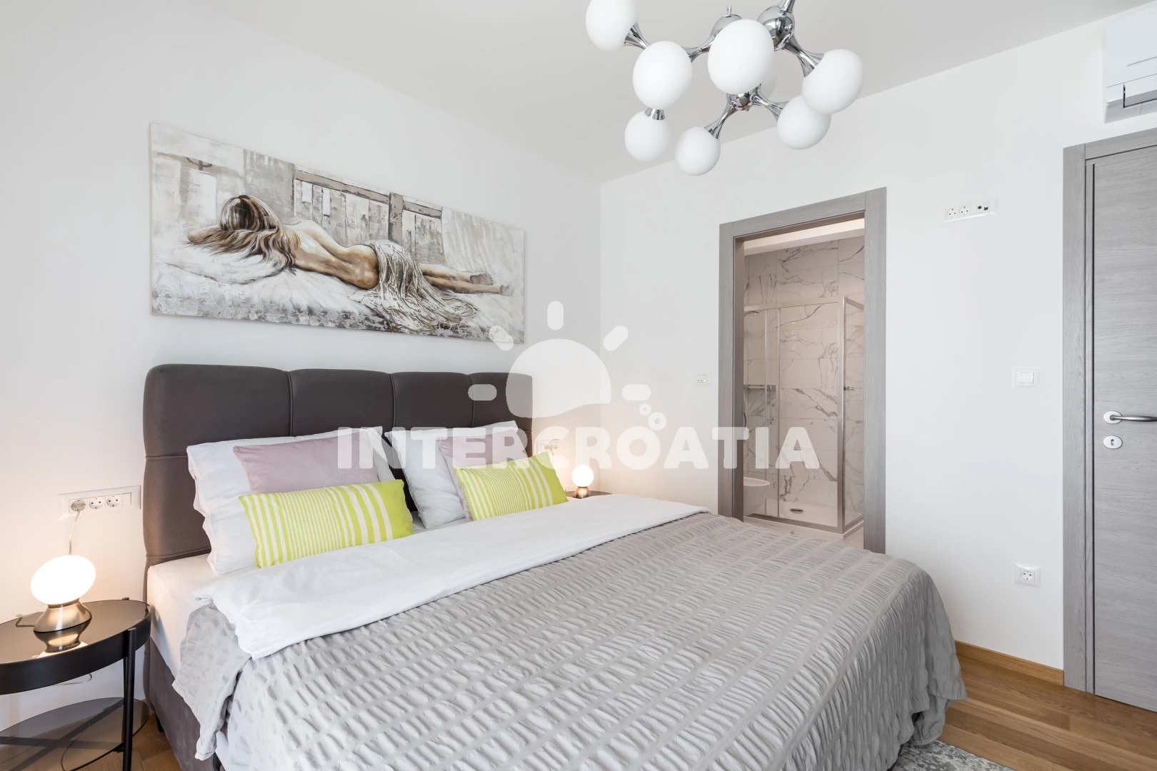 Apartmán (93 m2) s balkonem, a výhledem na moře. Nachází se v 1. patře objektu. Apartmán má 2 ložnice a je vhodný pro až 4 osoby. Kuchyňská linka je vybavena varnou deskou, troubou, kávovarem, toustovačem, myčkou na nádobí, mikrovlnnou troubou, rychlovarnou konvicí, nádobím, lednicí, mrazákem. K dispozici televize, sejf, žehlička. První ložnice s dvoulůžkem. Druhá ložnice s dvoulůžkem. První koupelna se sprchovým koutem, umyvadlem, WC. Druhá koupelna se sprchovým koutem, umyvadlem, WC.