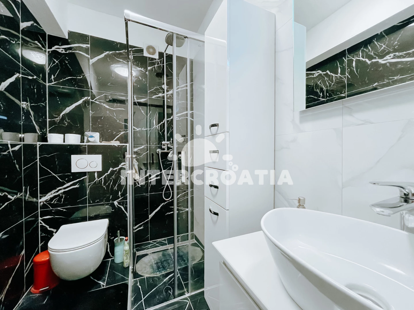 Vzdálenosti: Moře 1 km, pláž 1,5 km (oblázky), supermarket 100 m, veřejná doprava 100 m, restaurace 500 m, bar 500 m, lékárna 1 km, čerpací stanice 1,5 km, trajekt (Split) 2 km, centrum 2 km, letiště (Split) 20 km,
