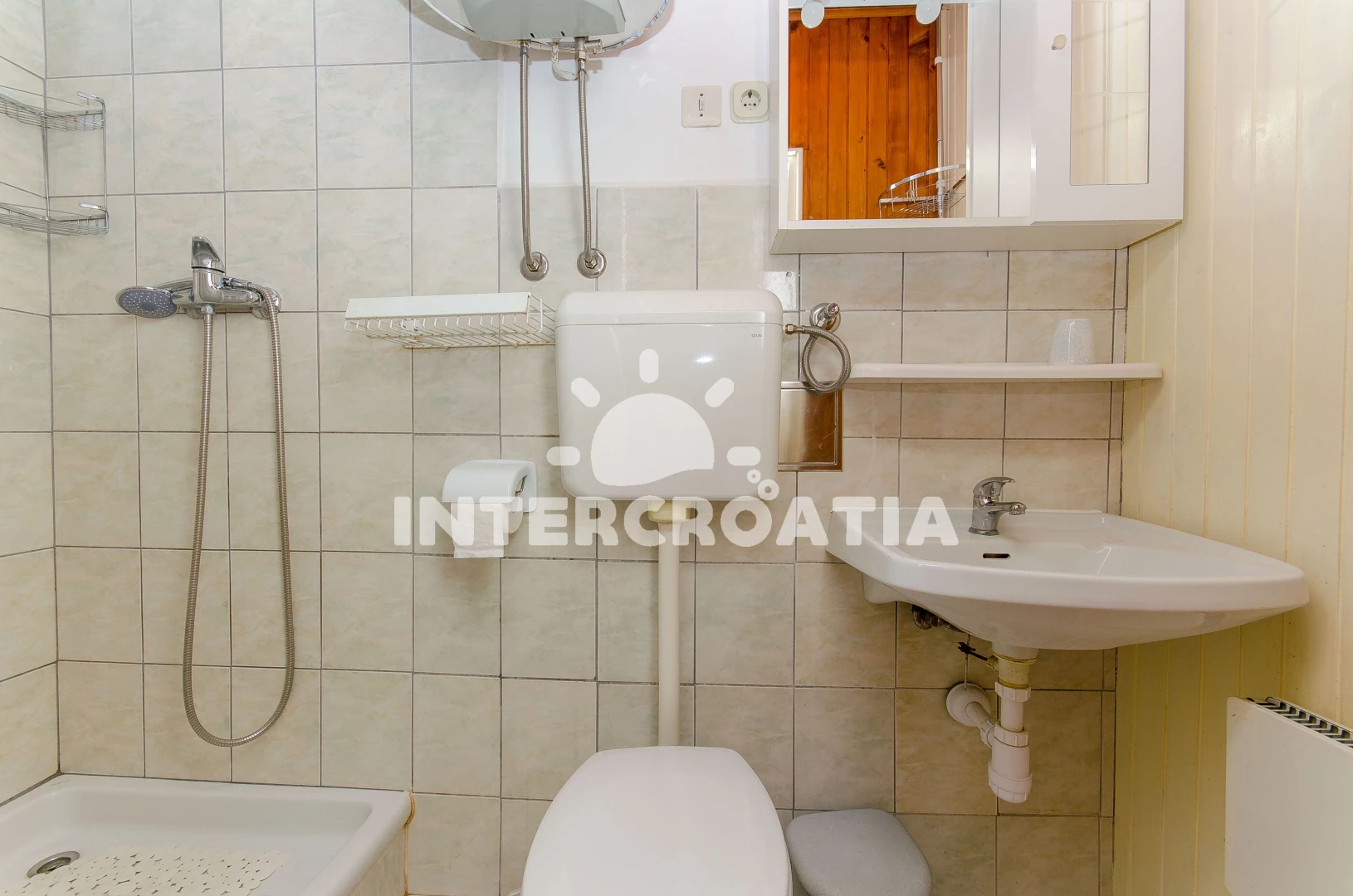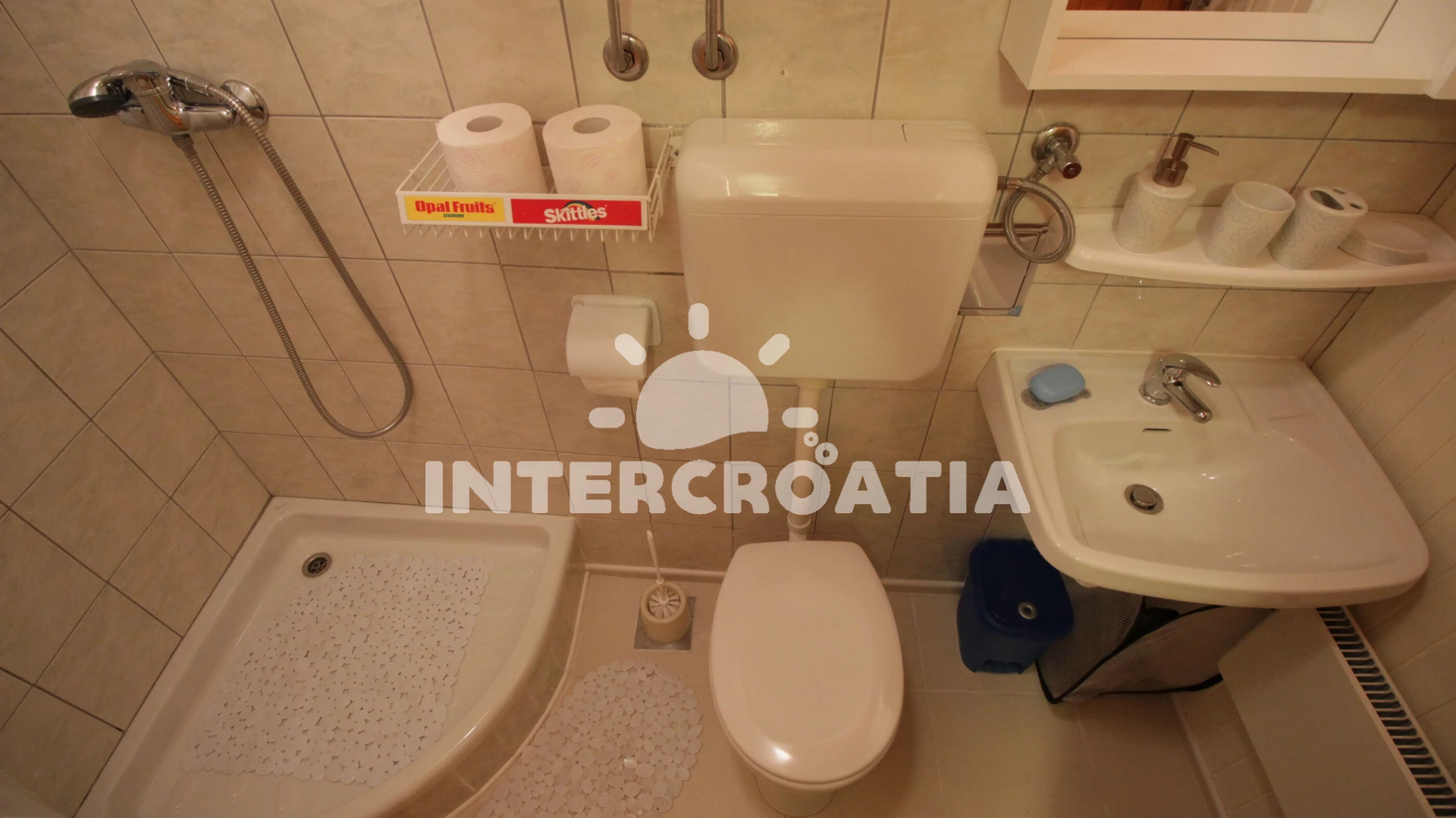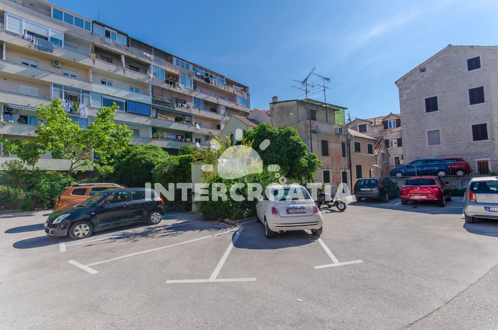 Vzdálenosti: Moře 300 m, pláž 1,5 km (písčitá a betonové desky), supermarket 50 m, diskotéka 100 m, bar 100 m, banka 100 m, centrum 100 m, směnárna 100 m, lékárna 100 m, veřejná doprava 100 m, pošta 120 m, restaurace 150 m, muzeum 150 m, ambulance 500 m, trajekt (Split) 1,2 km, čerpací stanice 1,5 km, letiště (Split) 23 km,