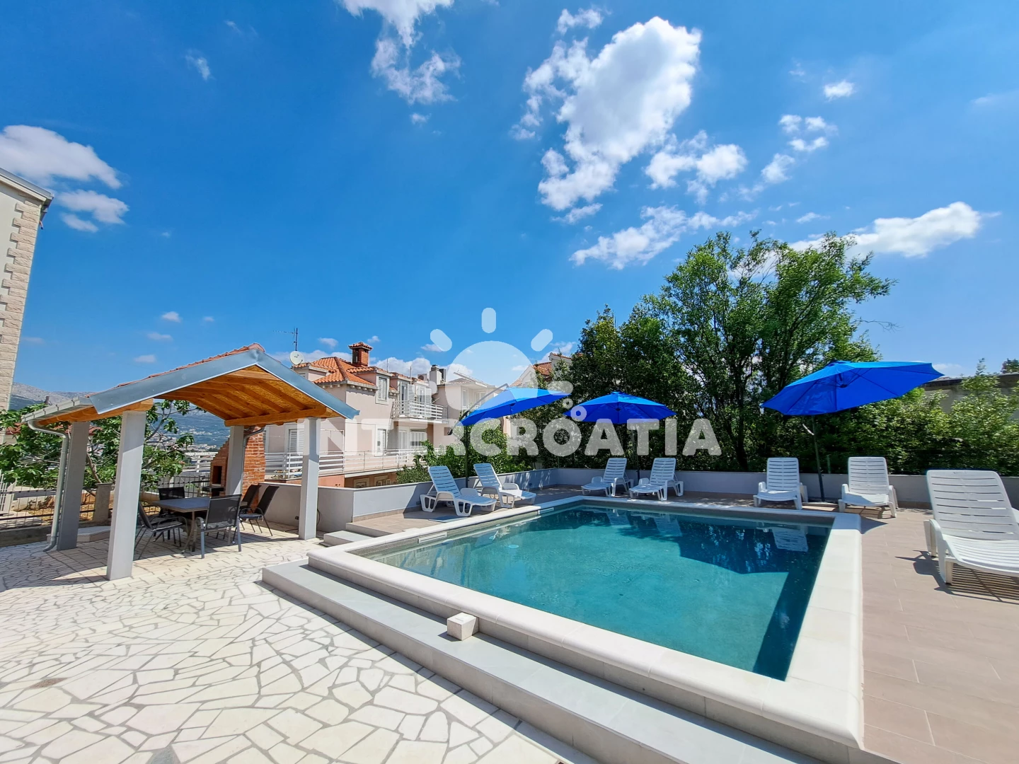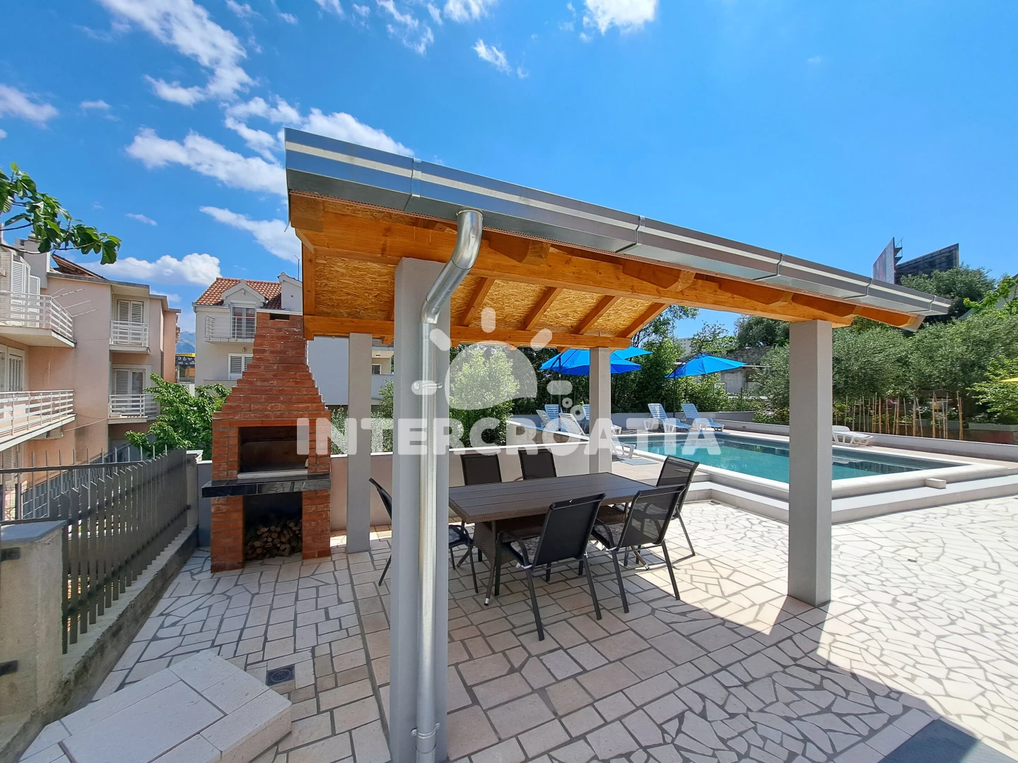 We stayed at this accommodation with six friends and had a fantastic experience. The swimming pool provided a great way to spend the day, and the interior was spotless and well-organized. The kitchen was well-equipped with all the necessary cooking tools, and having two fridges and a freezer was very convenient. Also having a balcony was very nice to sit and chill. Overall the accommodation was very well equipped with everything you need. To go out in Split we needed a taxi, but the taxi ride only was around 8 - 10 minutes. So in no time we were in at a club to go out. The owner was also very nice, thoughtful, and generous.