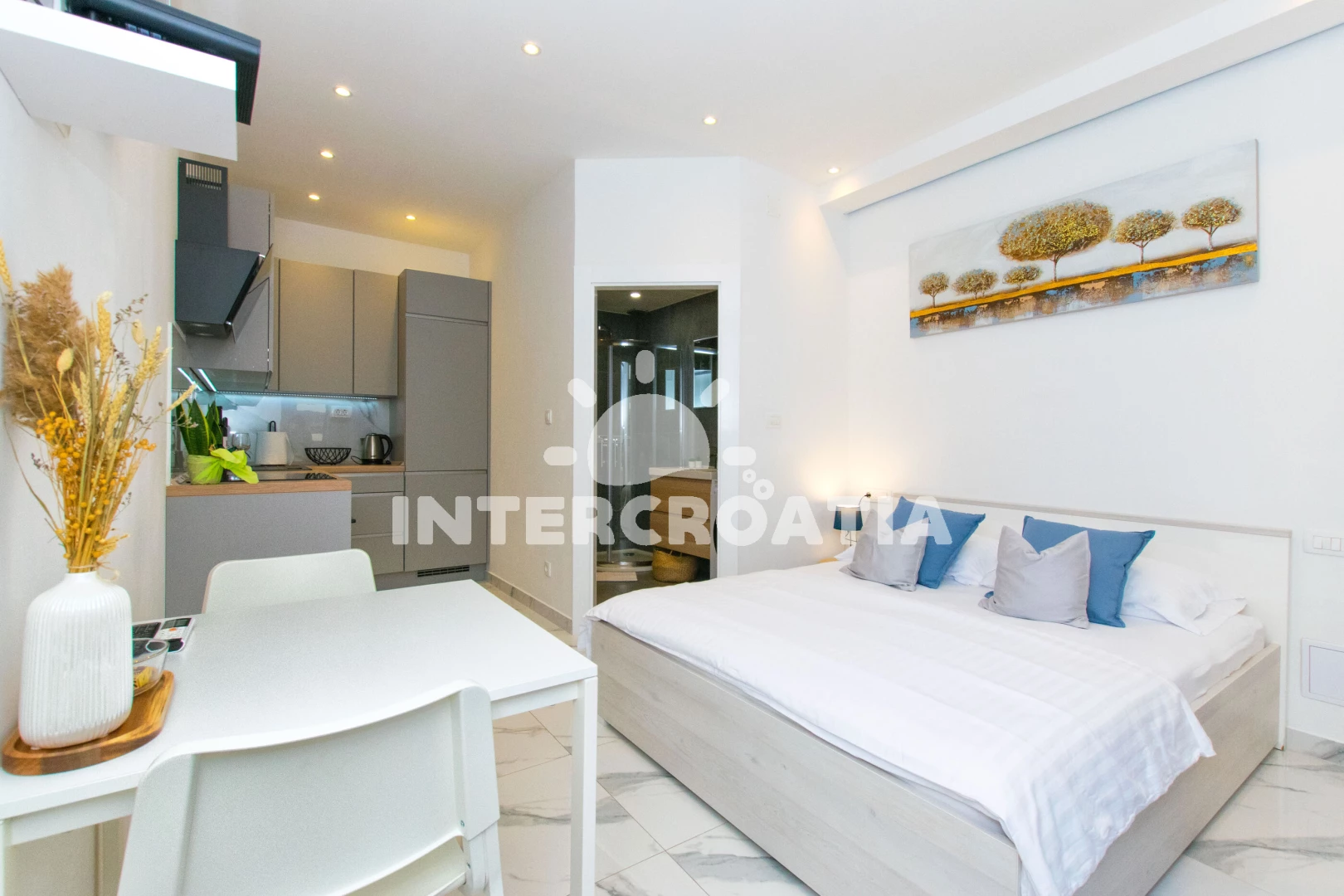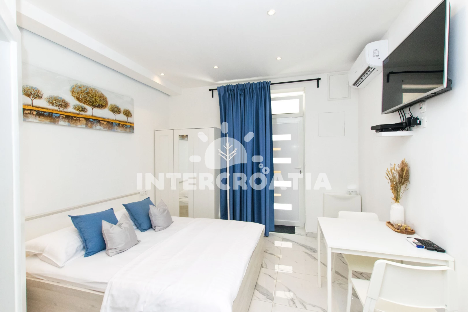 Vzdálenosti: Moře 400 m, pláž 2 km (písčitá, oblázková a skalnatá), centrum 50 m, veřejná doprava 100 m, muzeum 200 m, bar 200 m, restaurace 200 m, diskotéka 200 m, pošta 220 m, supermarket 350 m, směnárna 400 m, lékárna 400 m, banka 500 m, trajekt (Split) 1,5 km, ambulance 1,5 km, potápění 2 km, letiště (Split) 25 km,