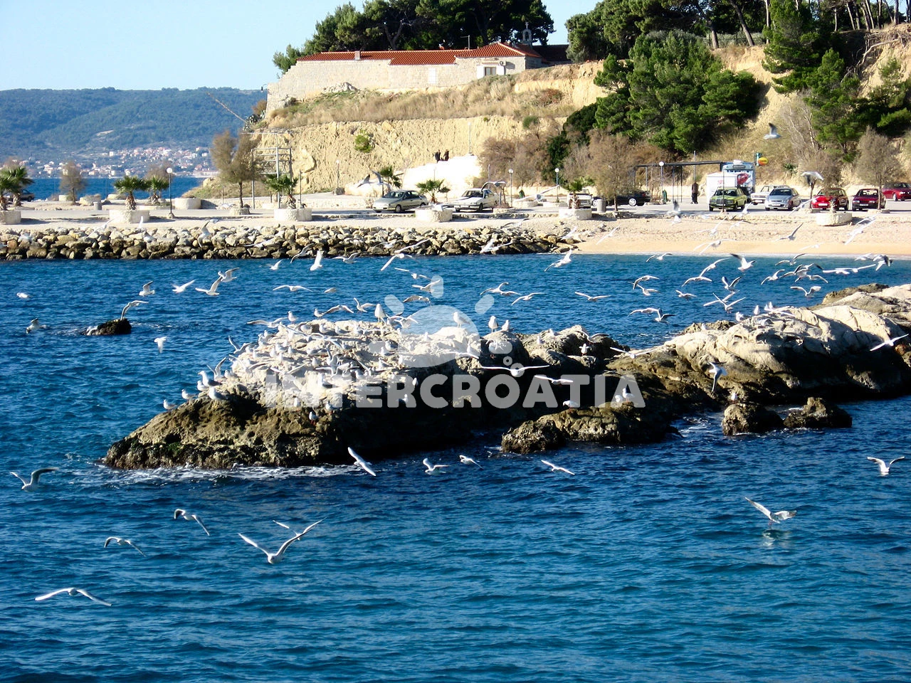 Vzdálenosti: Moře 400 m, pláž 1,1 km (oblázková a betonové desky), muzeum 20 m, supermarket 50 m, veřejná doprava 50 m, směnárna 100 m, restaurace 100 m, bar 100 m, lékárna 100 m, centrum 300 m, pošta 400 m, ambulance 400 m, banka 500 m, diskotéka 700 m, půjčovna kol 700 m, tenisové kurty 800 m, potápění 1 km, čerpací stanice 1 km, půjčovna motorových člunů 1 km, marina 1 km, trajekt (Split) 1,1 km, letiště (Split) 21 km,