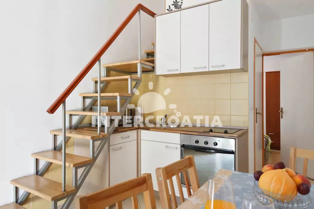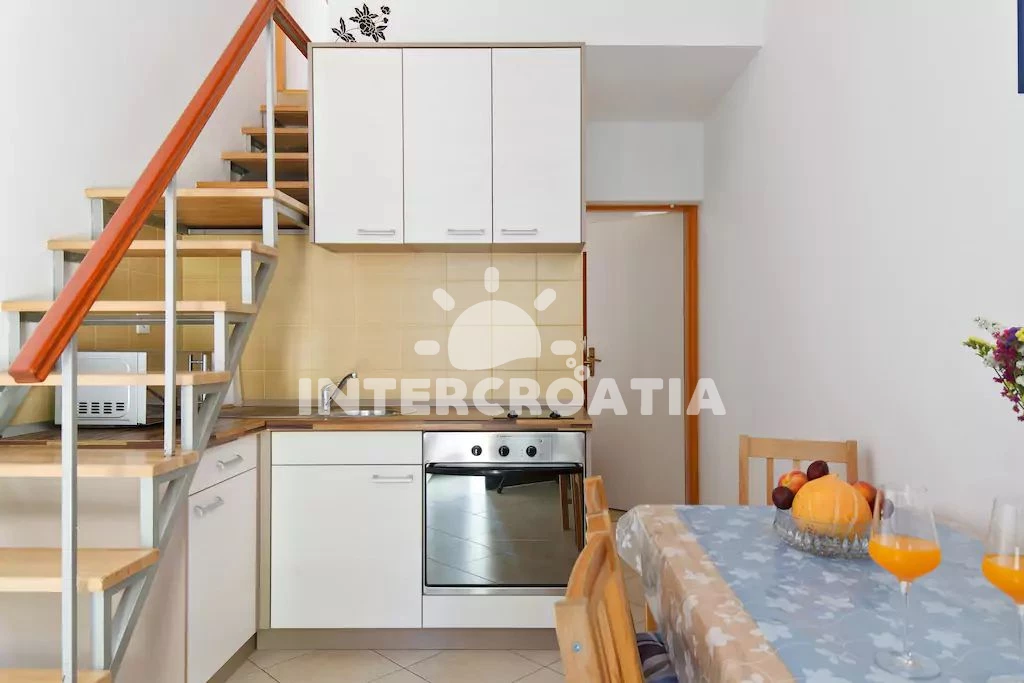 Apartmán se nachází 1100 m od moře a pláže. Pláž je oblázková a betonové desky. U objektu je k dispozici společná zahrada s posezením a grilem. Parkování je před domem.