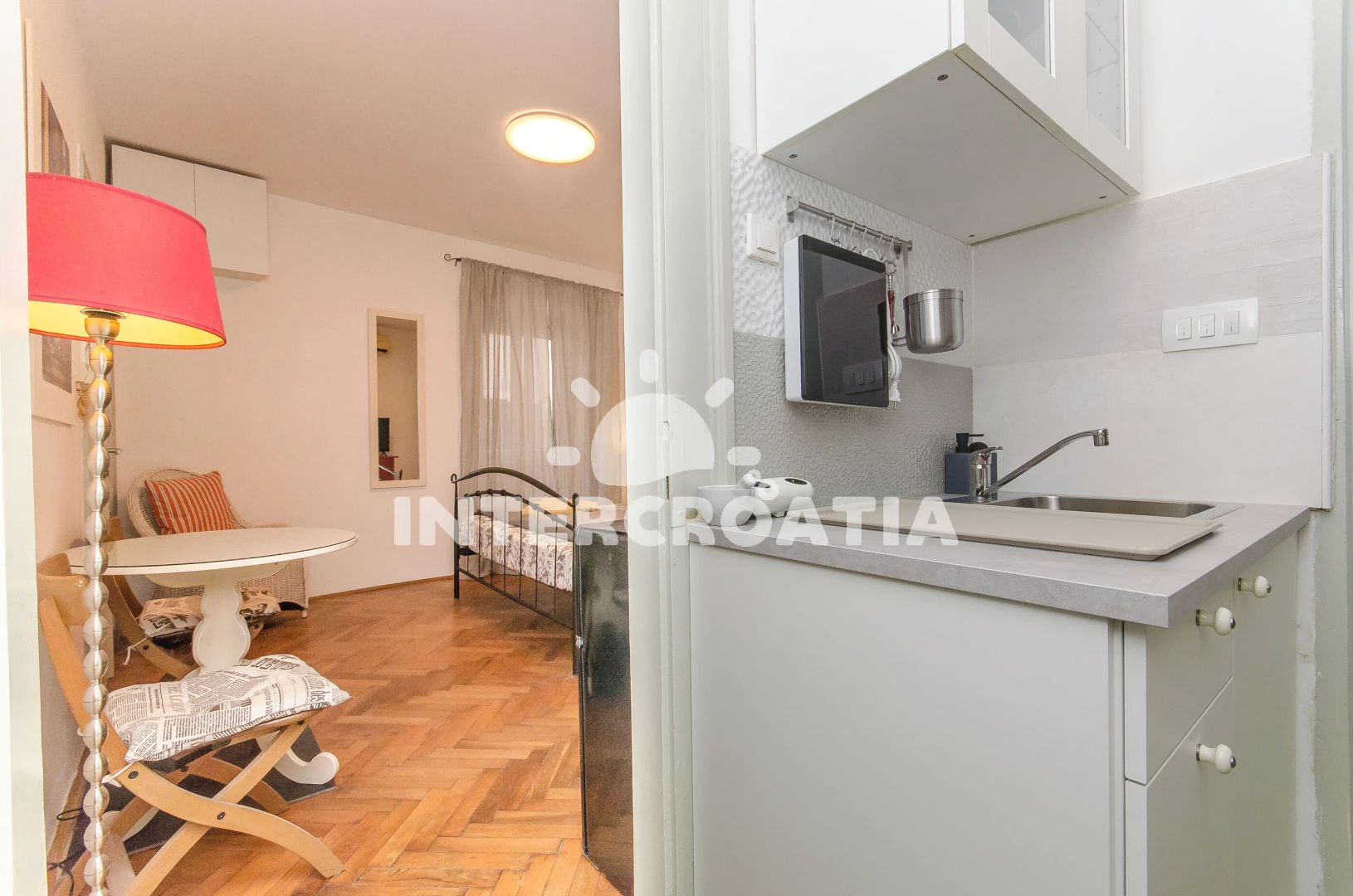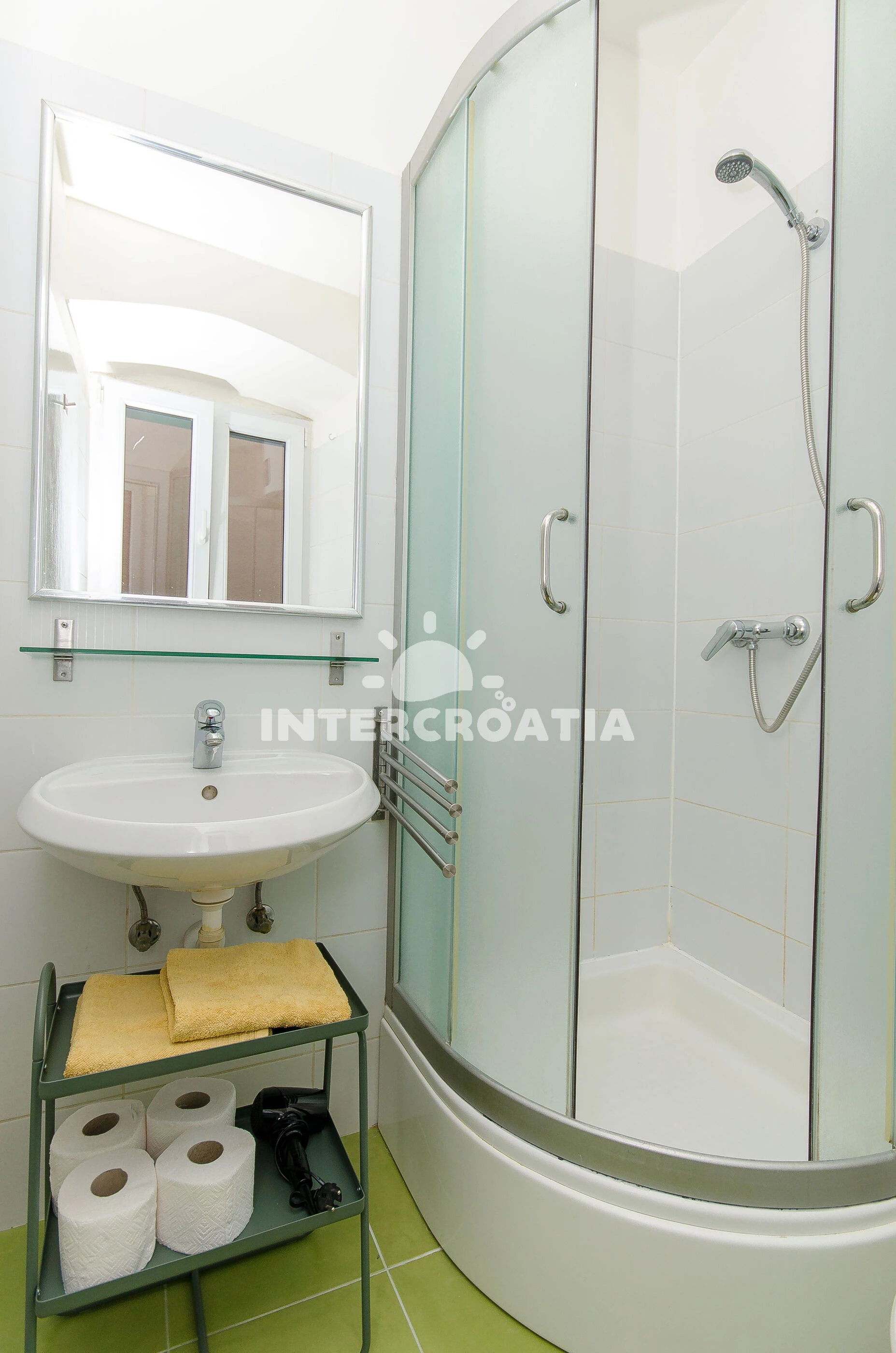 Vzdálenosti: centrum 0 m, Moře 100 m, pláž 700 m (písčitá a betonové desky), supermarket 60 m, bar 70 m, muzeum 100 m, restaurace 100 m, směnárna 100 m, lékárna 100 m, veřejná doprava 150 m, banka 200 m, diskotéka 200 m, pošta 400 m, ambulance 500 m, trajekt (Split) 600 m, čerpací stanice 1,5 km, letiště (Split) 23 km,