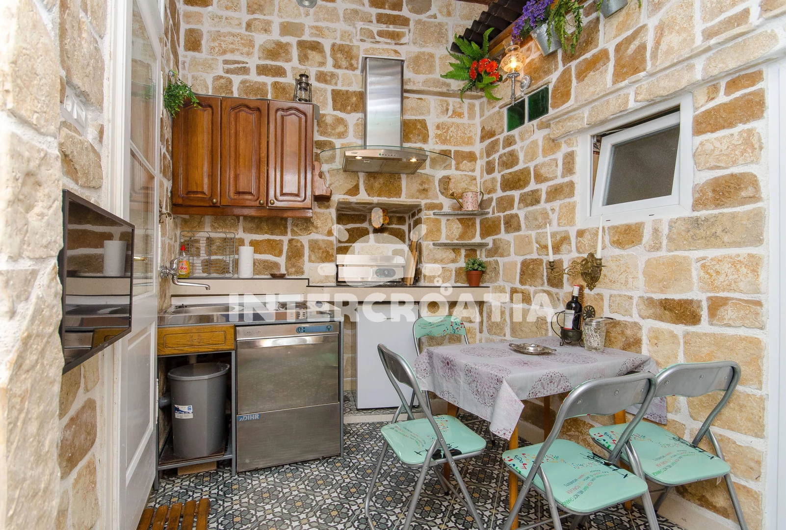 Vzdálenosti: Moře 20 m, pláž 1,5 km (písčitá a betonové desky), centrum 5 m, supermarket 20 m, veřejná doprava 50 m, restaurace 50 m, bar 100 m, směnárna 200 m, lékárna 250 m, banka 300 m, muzeum 350 m, pošta 500 m, diskotéka 500 m, trajekt (Split) 800 m, ambulance 1 km, čerpací stanice 2 km, letiště (Split) 23 km,