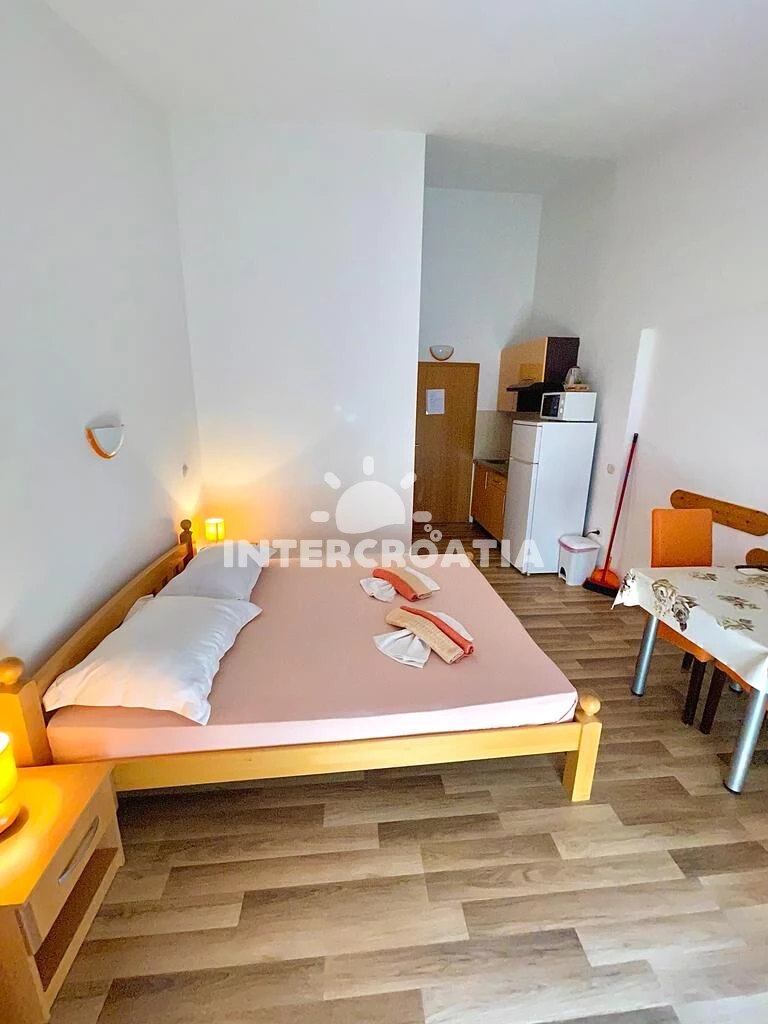 Apartmán (27 m2) s výhledem na moře. Nachází se ve 3. patře objektu. Kuchyňská linka je vybavena varnou deskou, mikrovlnnou troubou, rychlovarnou konvicí, nádobím, lednicí, mrazákem. K dispozici…