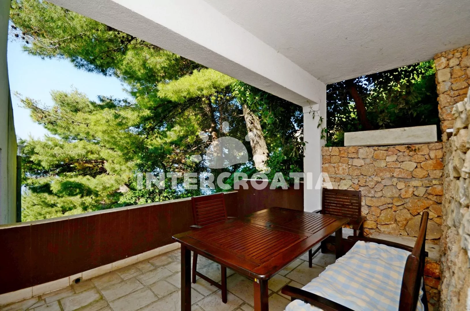 Volně stojící menší domek s přímým přístupem pár desítek metrů k moři. Dům nabízí ubytování v apartmánech s lodžiemi a venkovním posezením. Do objektu není možné dojet osobním automobilem, proto pokud přijedete autem, je potřebné ho zaparkovat na parkovišti u magistrály a sejít 100 schodů k apartmánu.