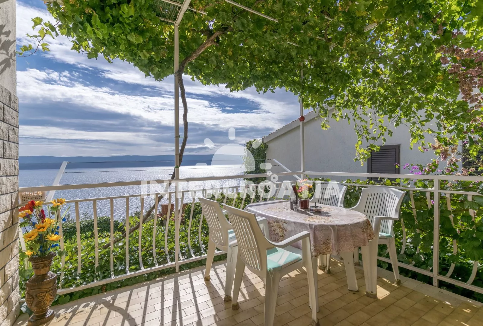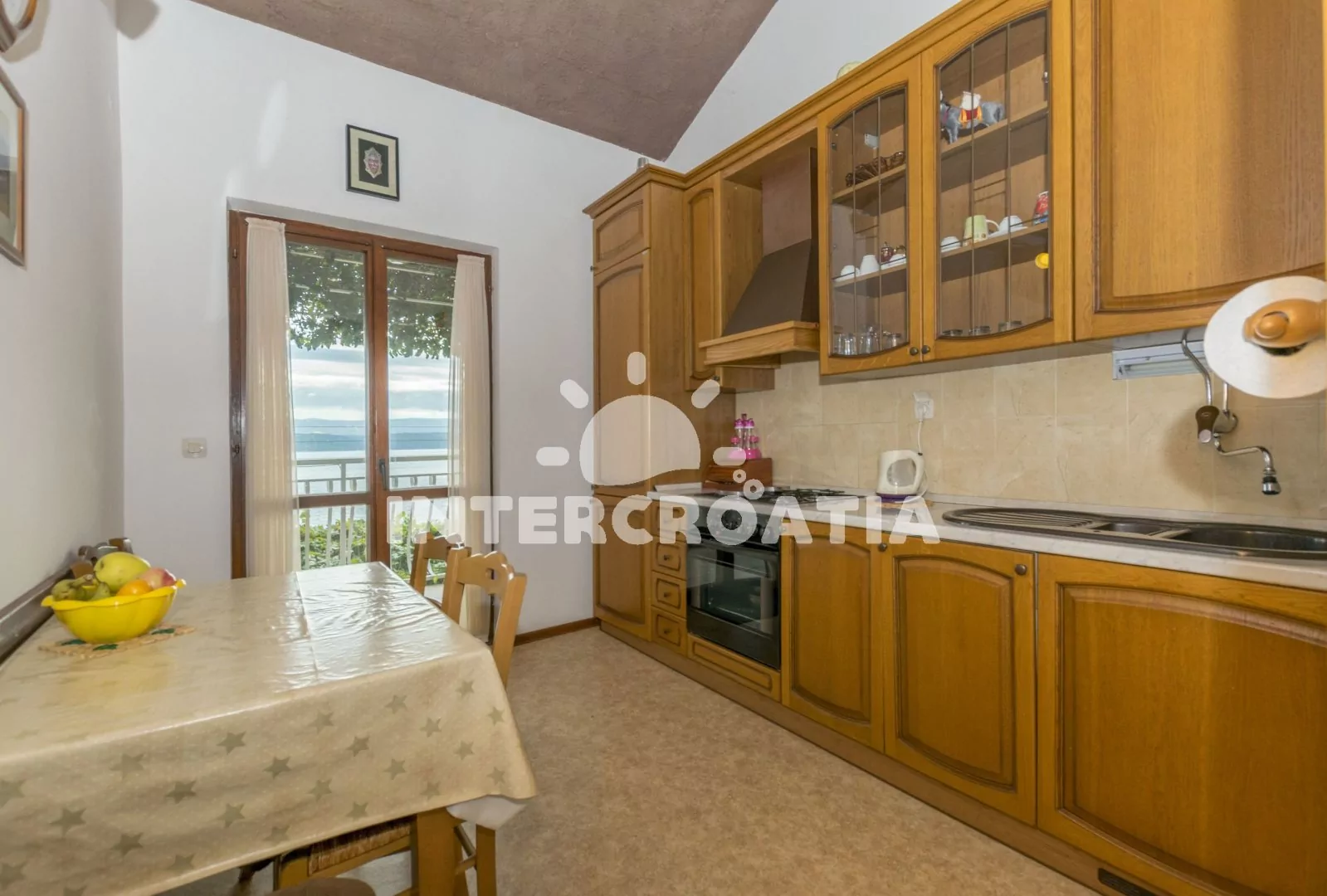 Apartmán (42 m2) s terasou a výhledem na moře se nachází v 2. patře domu a je vhodný pro 4 osoby. Kuchyňská linka je vybavena varnou deskou, digestoří, troubou, rychlovarnou konvicí, myčkou na nádobí…