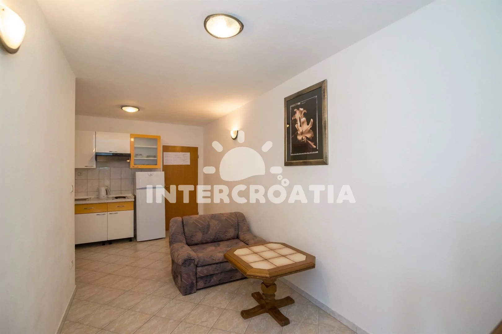 Vzdálenosti: Moře a oblázková pláž 570 m, veřejná doprava 300 m, centrum, supermarket, bar, restaurace 800 m, pošta 3 km, půjčovna motorových člunů a cyklistických kol, ambulance, směnárna, čerpací stanice, banka, přístav, muzeum 5 km, lékárna, tenis, diskotéka 6 km, trajekt 30 km, letiště 50 km.