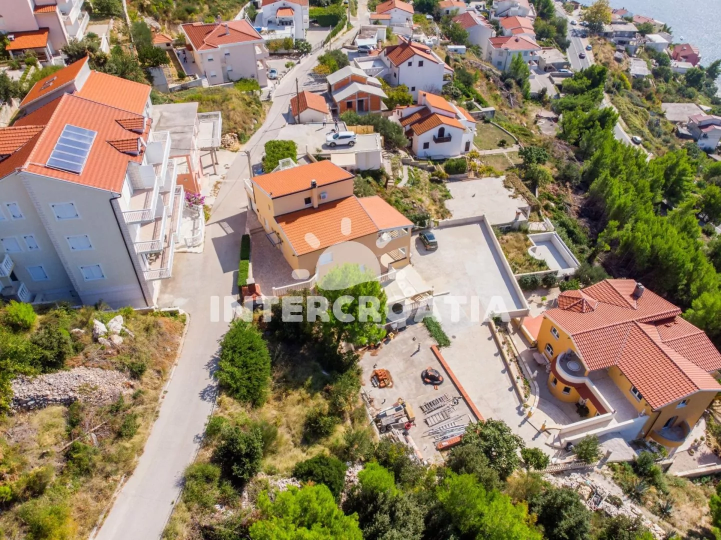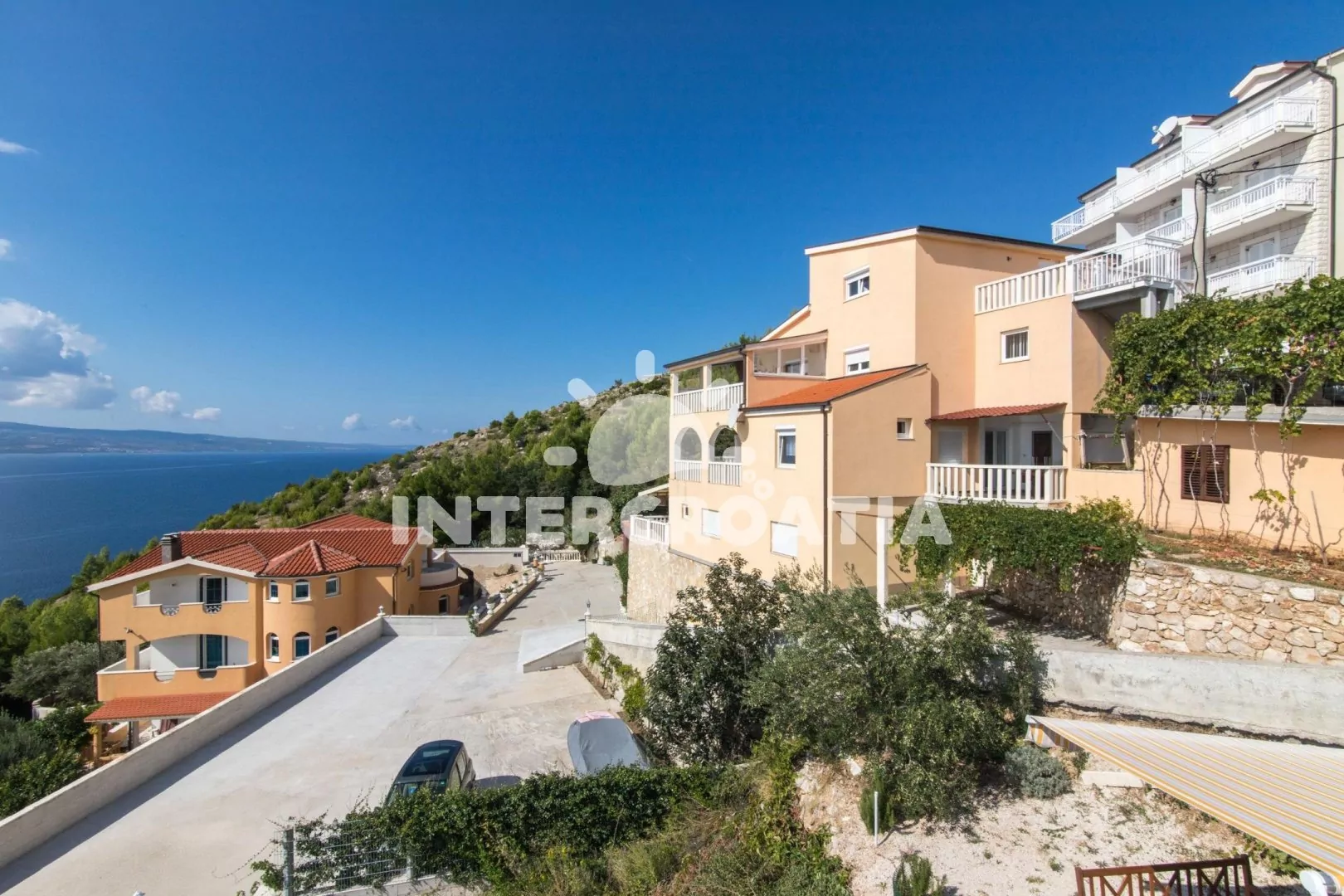 Samostatně stojící apartmánový dům se nachází 570 m pěší chůzí od moře a pláže. Dům nabízí ubytování ve 3 apartmánech s lodžiemi a venkovním posezením. Objekt je umístěný v kopci, a díky tomu poskytuje nádherný výhled na moře a krajinu. K dispozici společná terasa se zděným grilem. Parkovací místa pro automobily u domu, garáž na požádání.