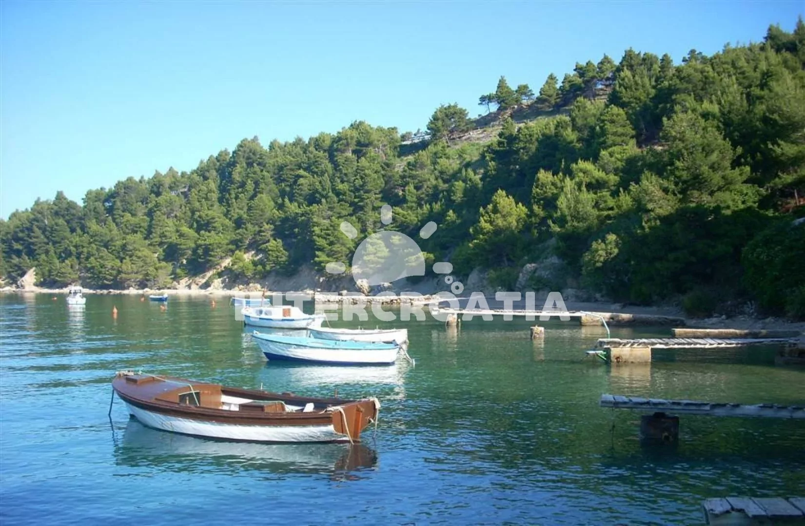 Vzdálenosti: Moře a oblázková pláž 570 m, veřejná doprava 300 m, centrum, supermarket, bar, restaurace 800 m, pošta 3 km, půjčovna motorových člunů a cyklistických kol, ambulance, směnárna, čerpací stanice, banka, přístav, muzeum 5 km, lékárna, tenis, diskotéka 6 km, trajekt 30 km, letiště 50 km.
