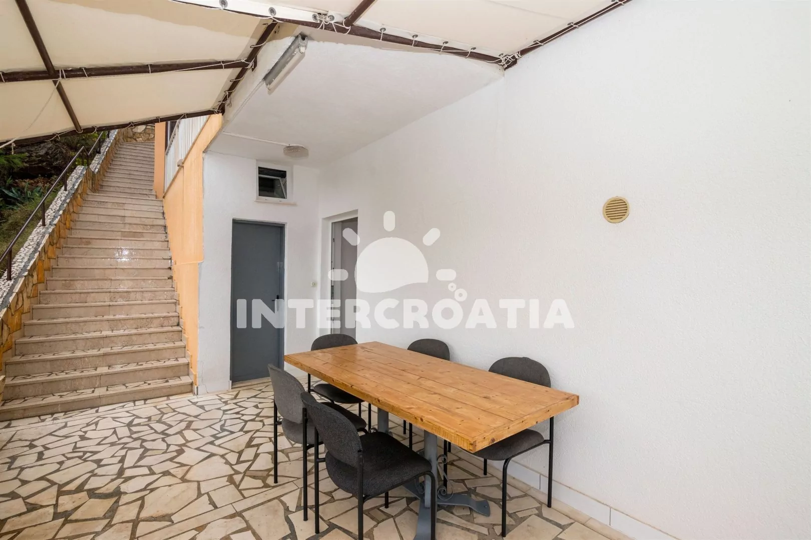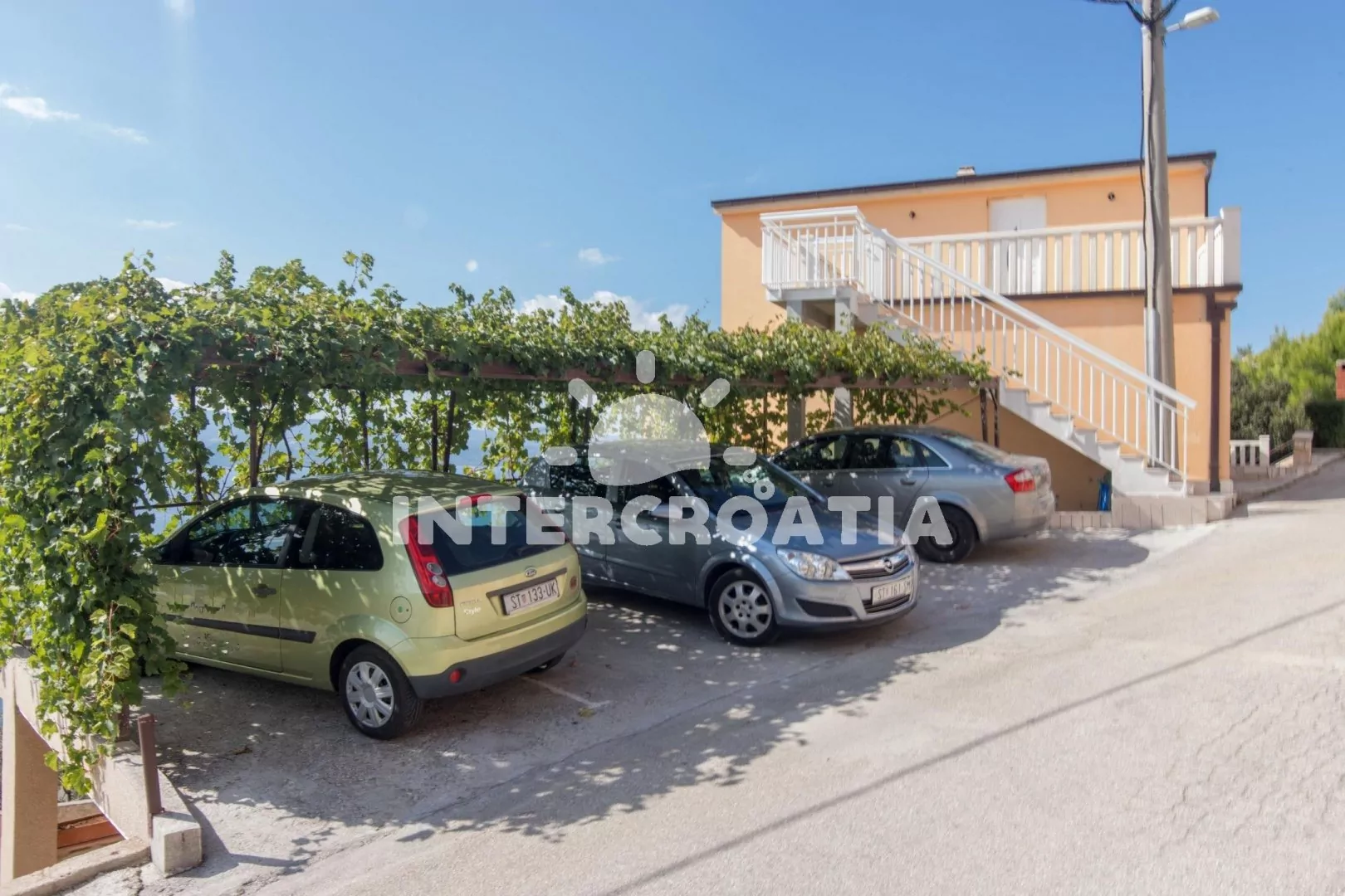 Samostatně stojící apartmánový dům se nachází 570 m pěší chůzí od moře a pláže. Dům nabízí ubytování ve 3 apartmánech s lodžiemi a venkovním posezením. Objekt je umístěný v kopci, a díky tomu poskytuje nádherný výhled na moře a krajinu. K dispozici společná terasa se zděným grilem. Parkovací místa pro automobily u domu, garáž na požádání.