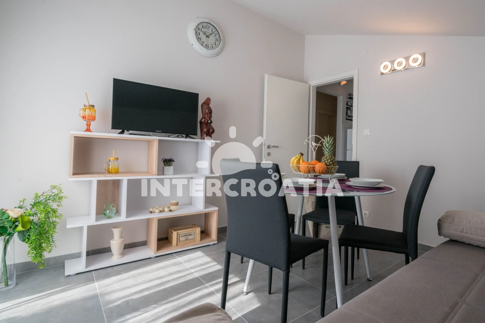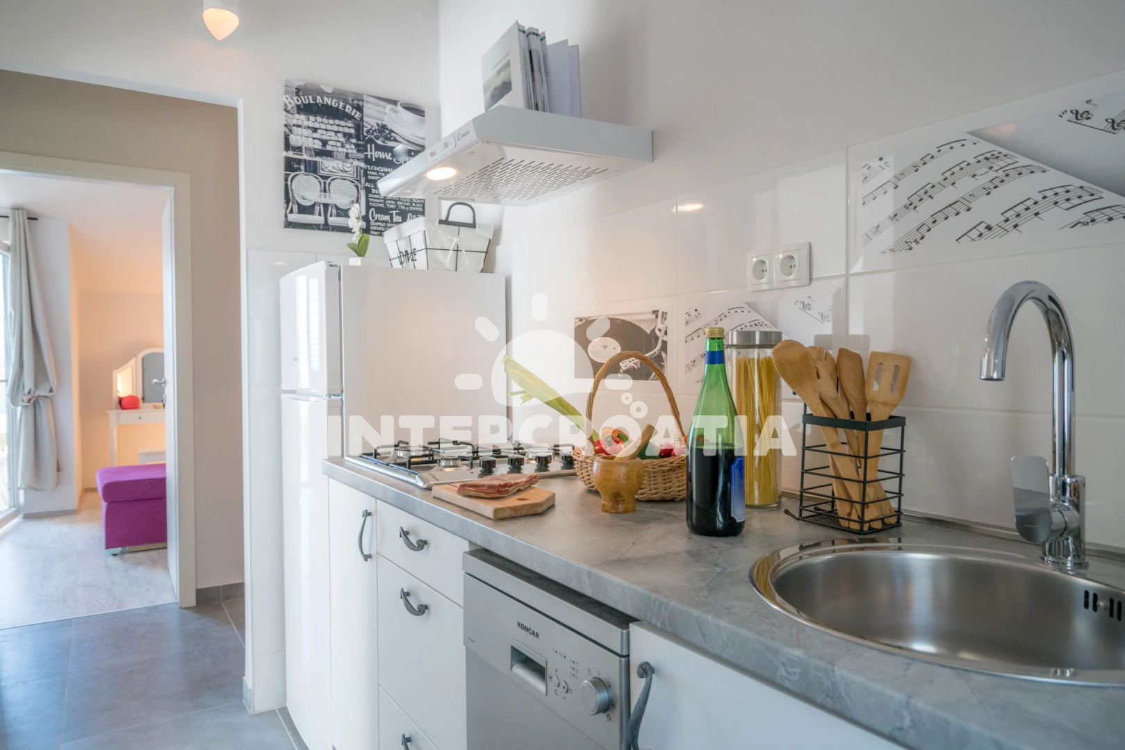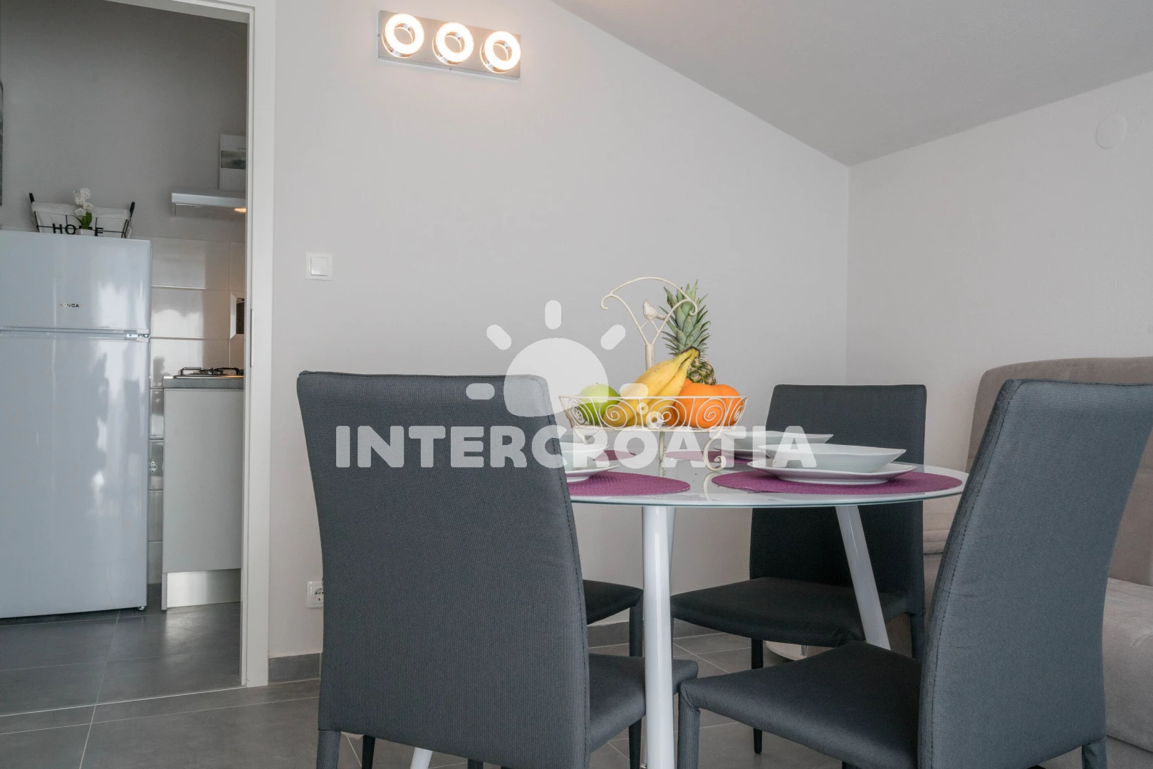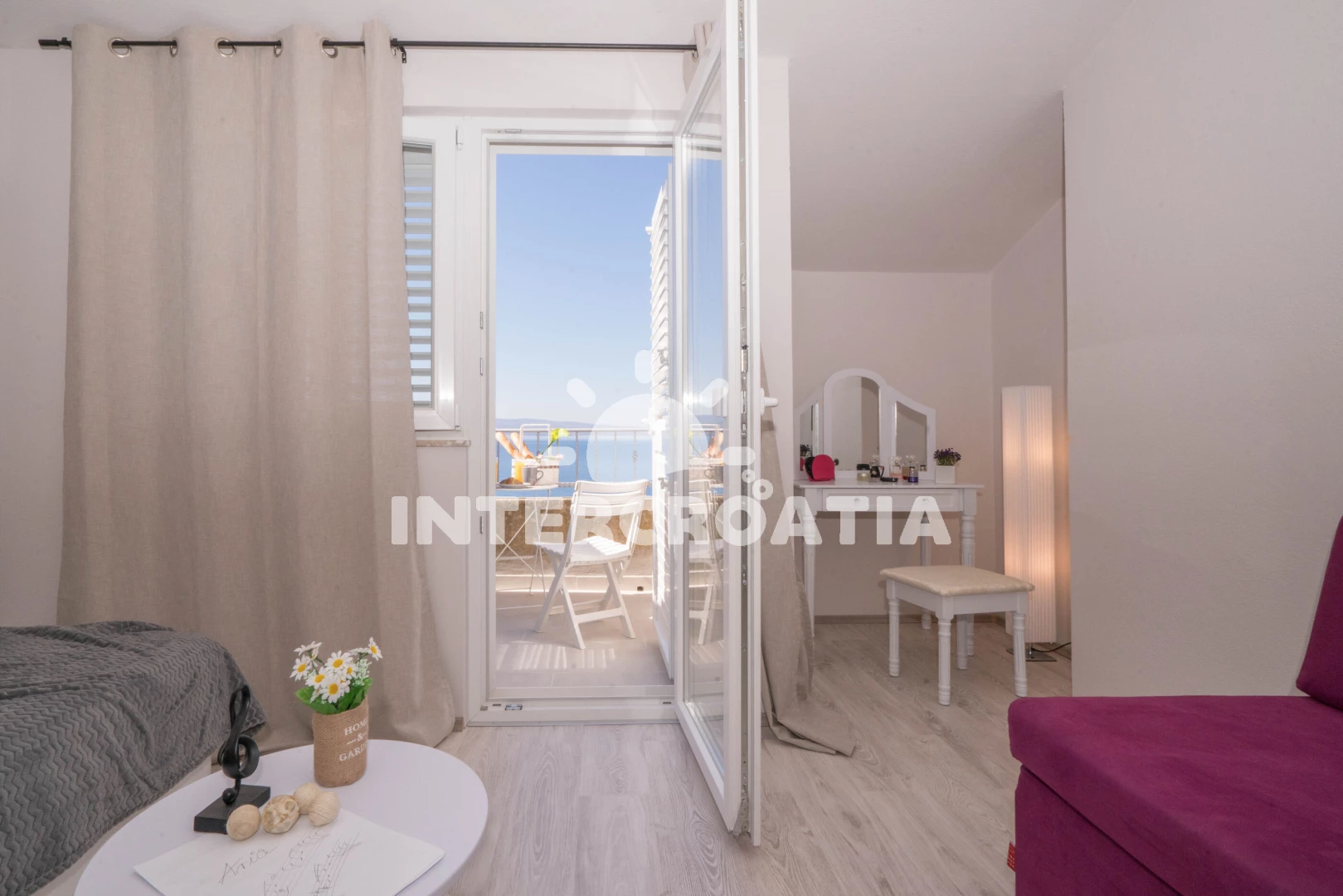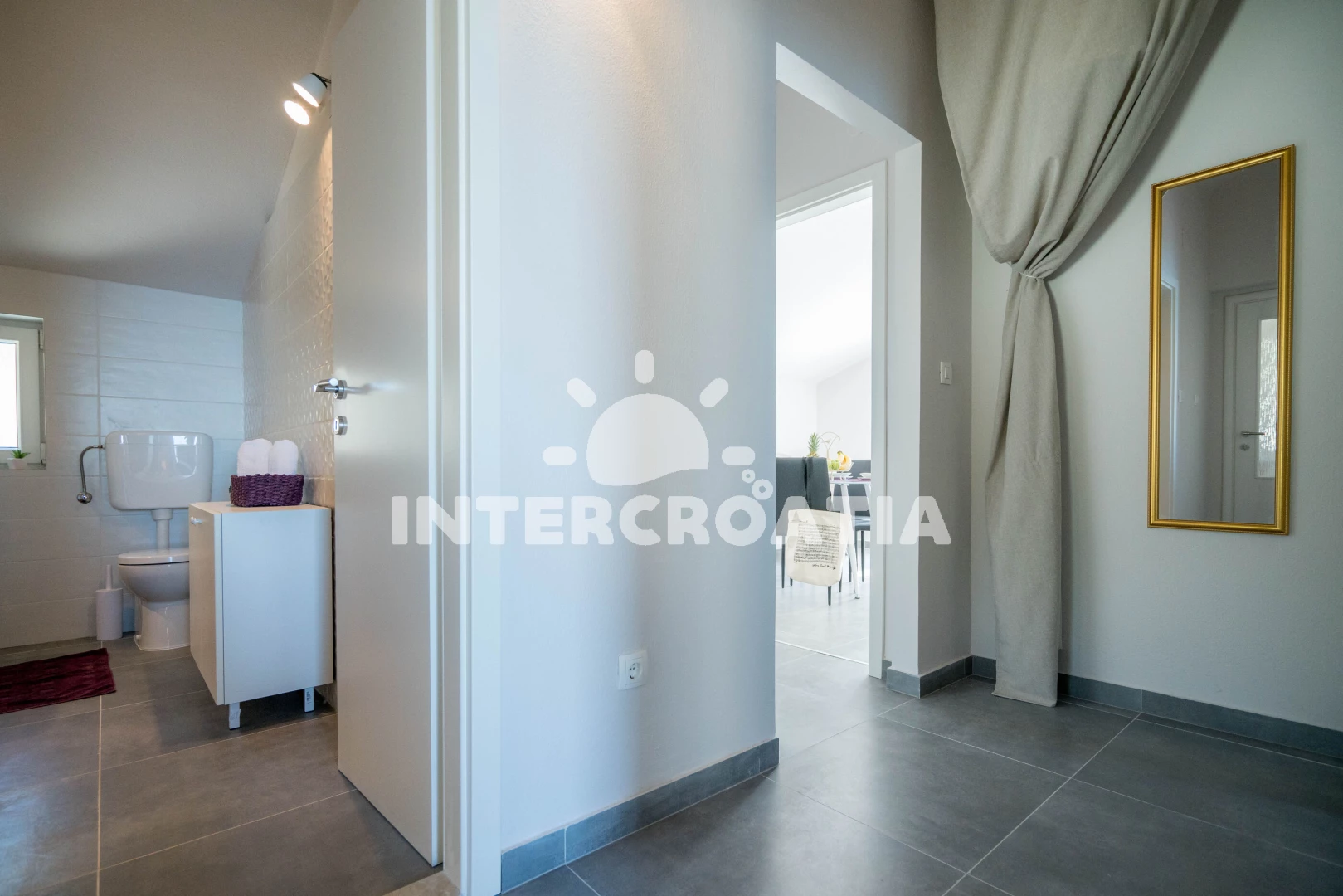 Vzdálenosti: Moře 75 m, pláž 80 m (oblázky), restaurace 300 m, bar 300 m, supermarket 450 m, veřejná doprava 450 m, centrum 500 m, půjčovna kol 3 km, lékárna 4 km, potápění 4 km, ambulance 4 km, směnárna 4 km, marina 5 km, čerpací stanice 5 km, pošta 5 km, banka 5 km, tenisové kurty 20 km, mini golf 20 km, trajekt (Split) 30 km, diskotéka 30 km, letiště (Split) 50 km, park Plitvice 131 km,