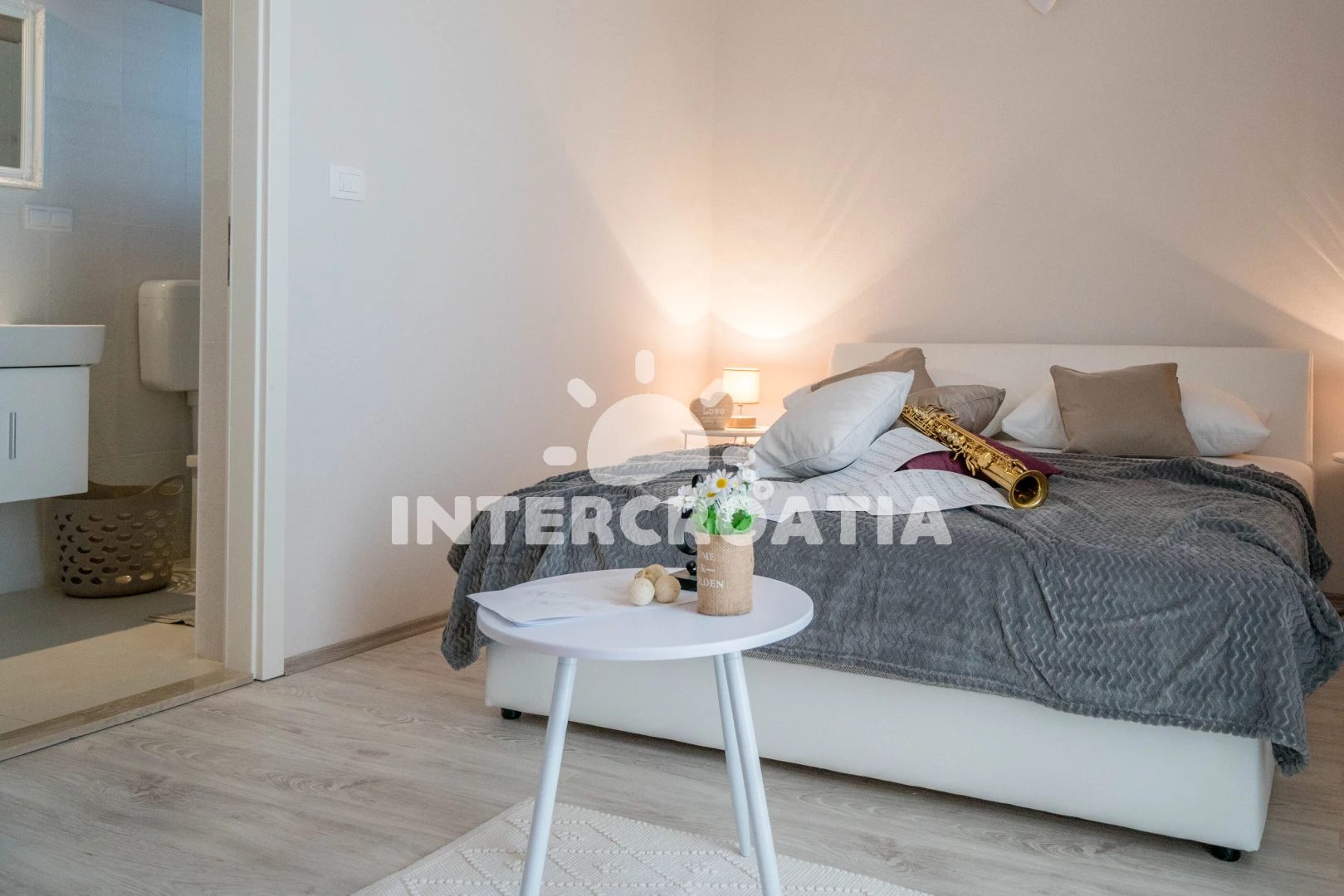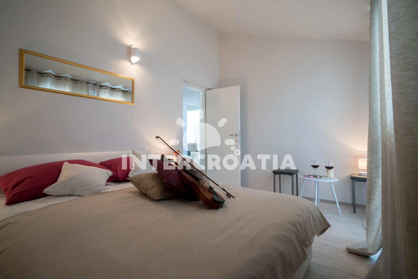 Apartmán (65 m2) s balkonem, a výhledem na moře. Nachází se ve 2. patře objektu. Apartmán má 2 ložnice a je vhodný pro až 4 osoby. Kuchyňská linka je vybavena varnou deskou, toustovačem, kávovarem, myčkou na nádobí, mikrovlnnou troubou, rychlovarnou konvicí, nádobím, lednicí, mrazákem. K dispozici televize, žehlička. První ložnice s dvoulůžkem. Druhá ložnice s dvoulůžkem. První koupelna se sprchovým koutem, umyvadlem, fénem a WC. Druhá koupelna se sprchovým koutem, umyvadlem, fénem a WC.