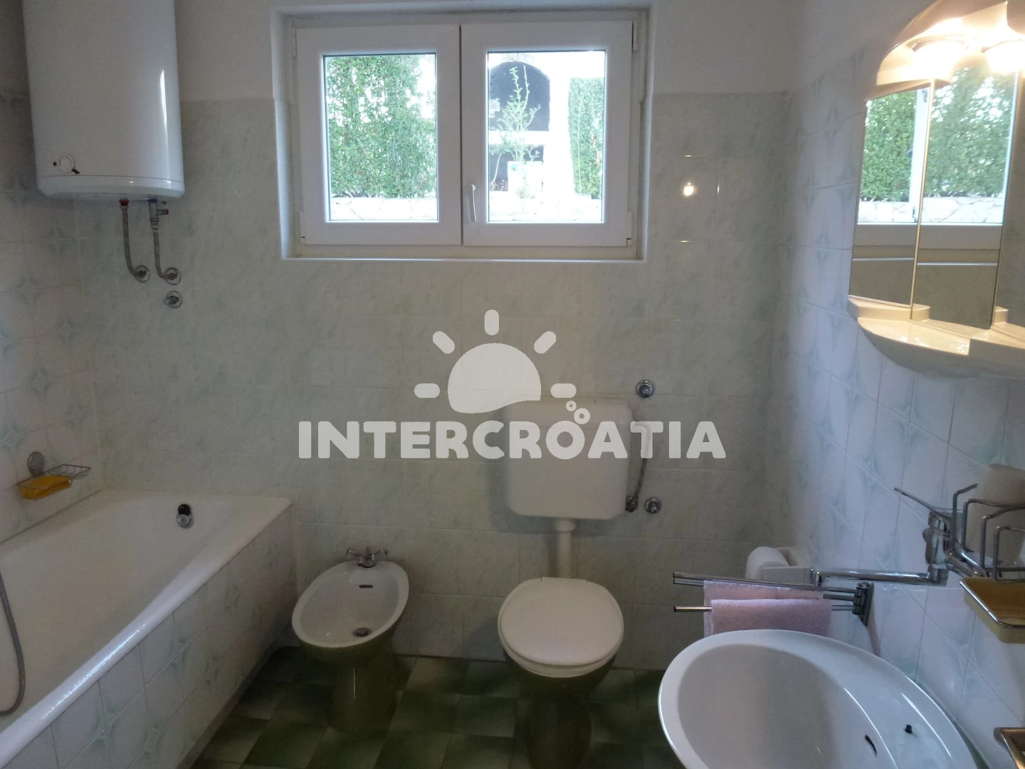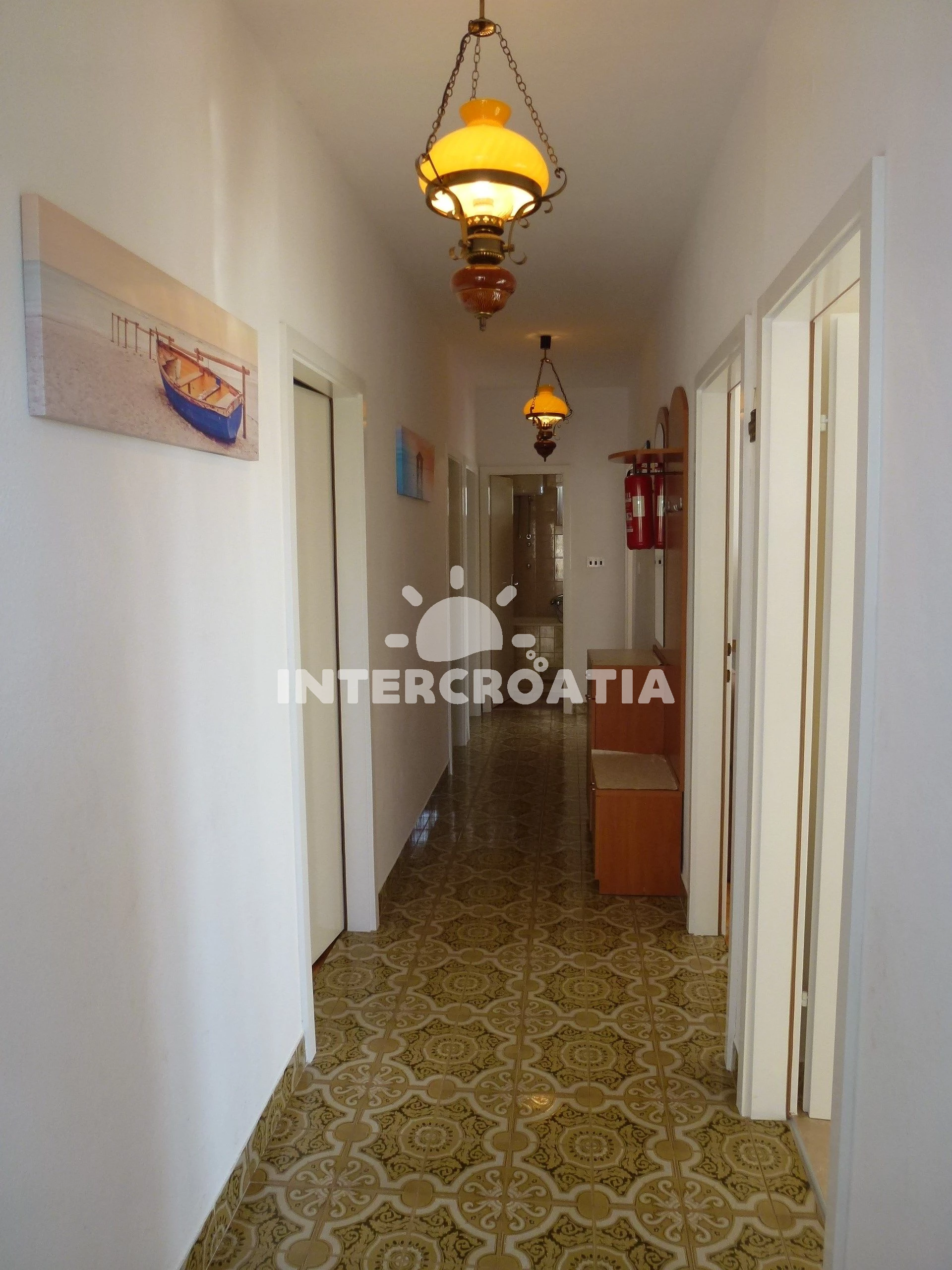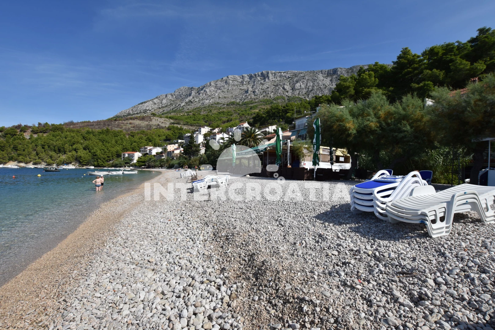 Vzdálenosti: Moře 90 m, pláž 110 m (oblázková a betonové desky), restaurace 100 m, supermarket 110 m, centrum 120 m, veřejná doprava 120 m, bar 150 m, lékárna 4,5 km, ambulance 4,5 km, banka 4,5 km, směnárna 4,5 km, pošta 4,5 km, kotviště pro čluny 4,5 km, půjčovna motorových člunů 5 km, čerpací stanice 5 km, potápění 5 km, marina 30 km, trajekt (Split) 30 km, muzeum 30 km, letiště (Split) 50 km,